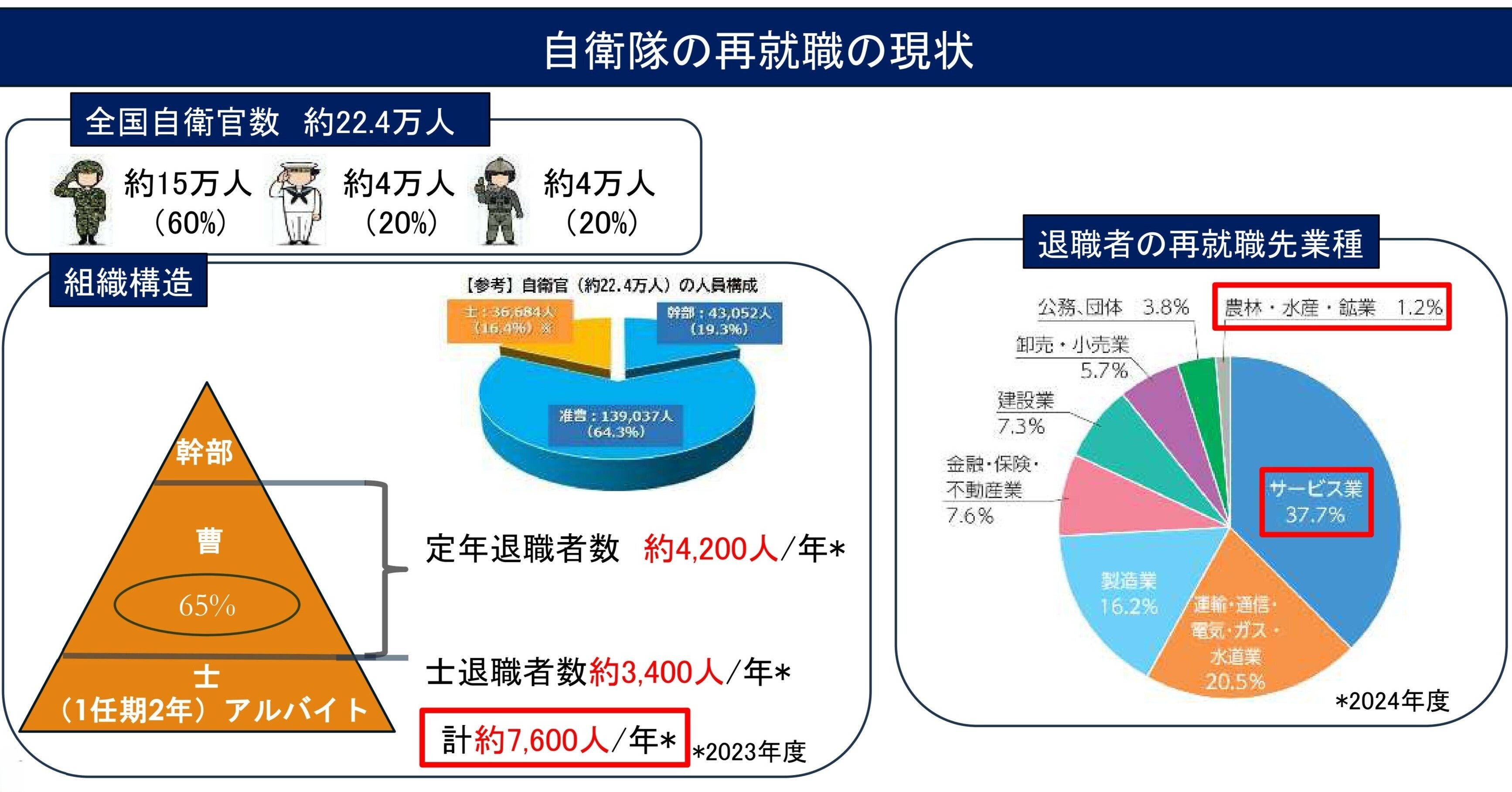 退役自衛官のうち最も多い約4割が、
