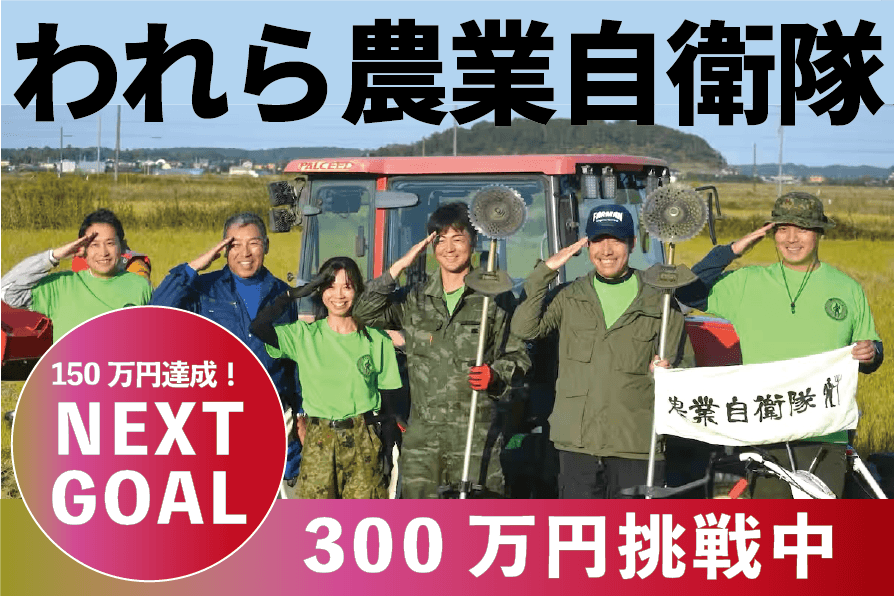 農業自衛隊のクラウドファンディングは、皆さまのご支援のおかげでファーストゴール50万円を開始100分で達成しました。