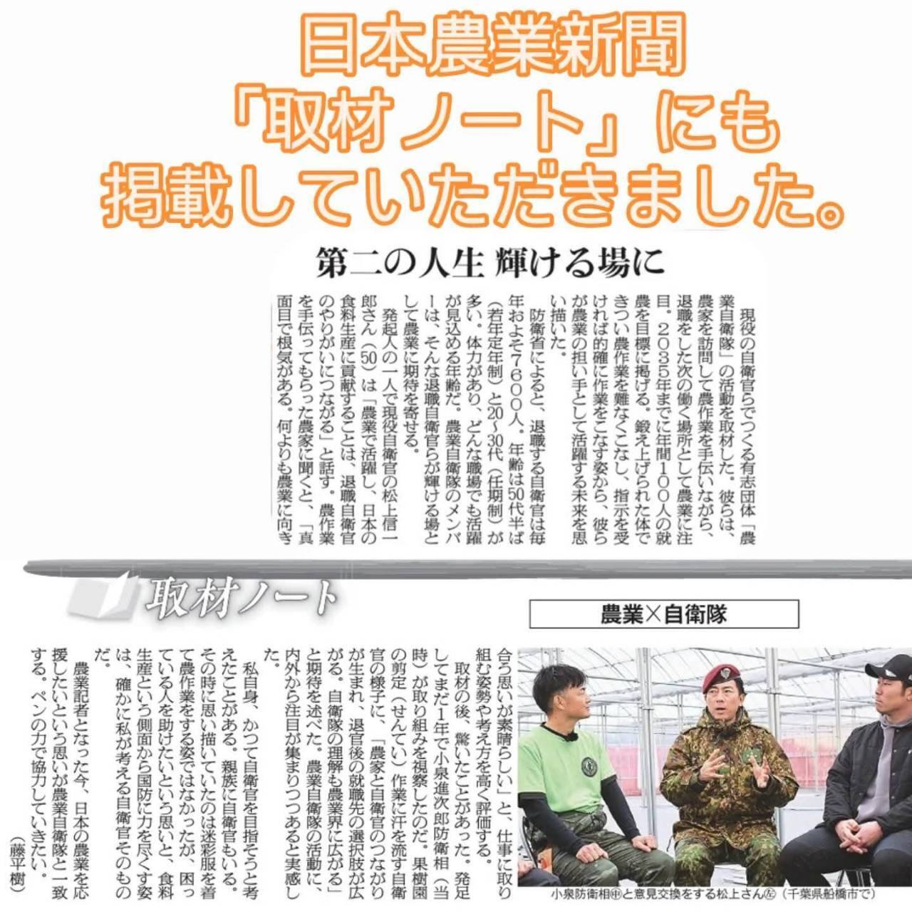 私たち農業自衛隊の取り組みを、日本農業新聞に掲載していただきました!