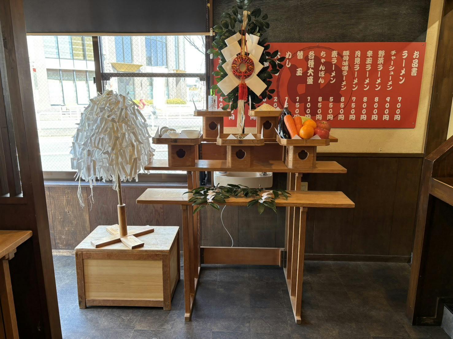 これから始まる営業が無事に続くよう、そしてこの場所で多くの方に喜んでいただけるよう、お祓いと祈願をしていただきました。