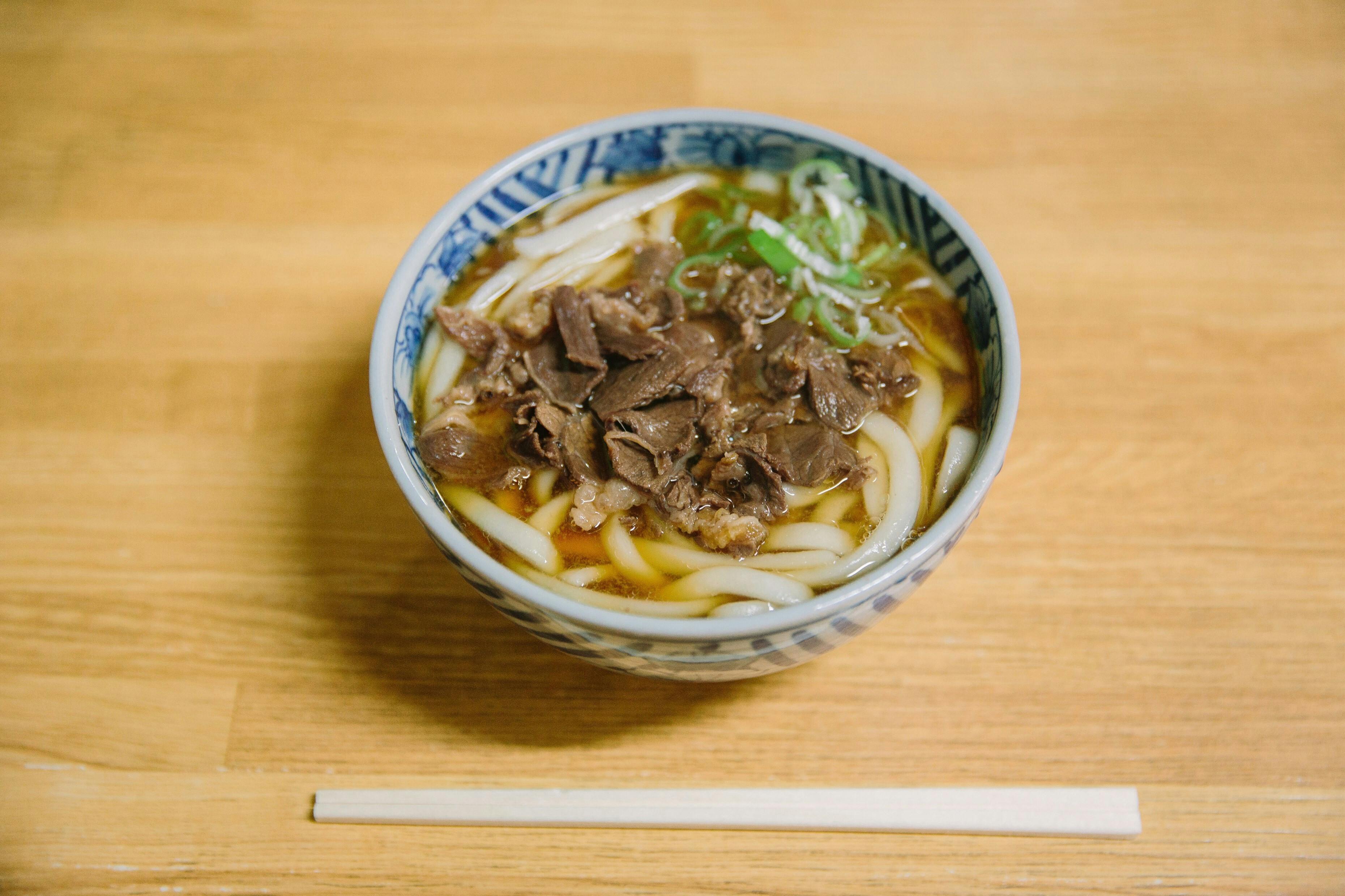 日野出食堂には代々伝わる、名物の馬肉うどんがあります。