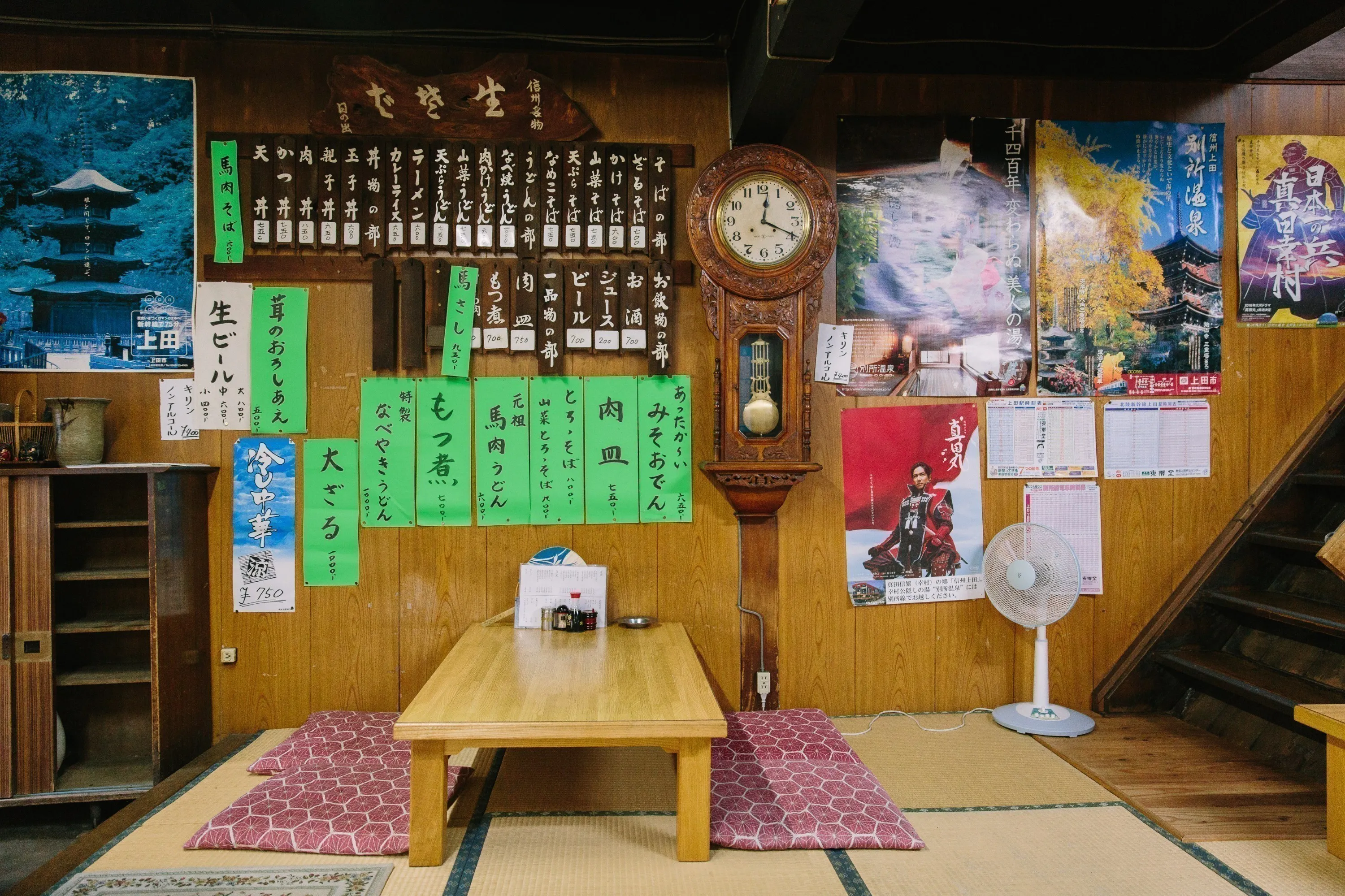壁には多くのサイン色紙が並べられ、別所温泉に心を休めに来た人々が心からくつろげる場所として愛されてきた、県外の方々にも有名なお店でした。創業された店主から齋藤さんにバトンが渡され、引き継がれた後も、昭和・平成と時代を越えてまるで「おばあちゃんの家」のような佇まいで別所温泉を支え、地元の人々の一息できる"休息"の場として、また、湯と寺院を楽しみに来た観光客の"回復"の場として、名物である馬肉うどんやかつ丼、蕎麦など親しみある街中の食堂メニューを提供してきました。