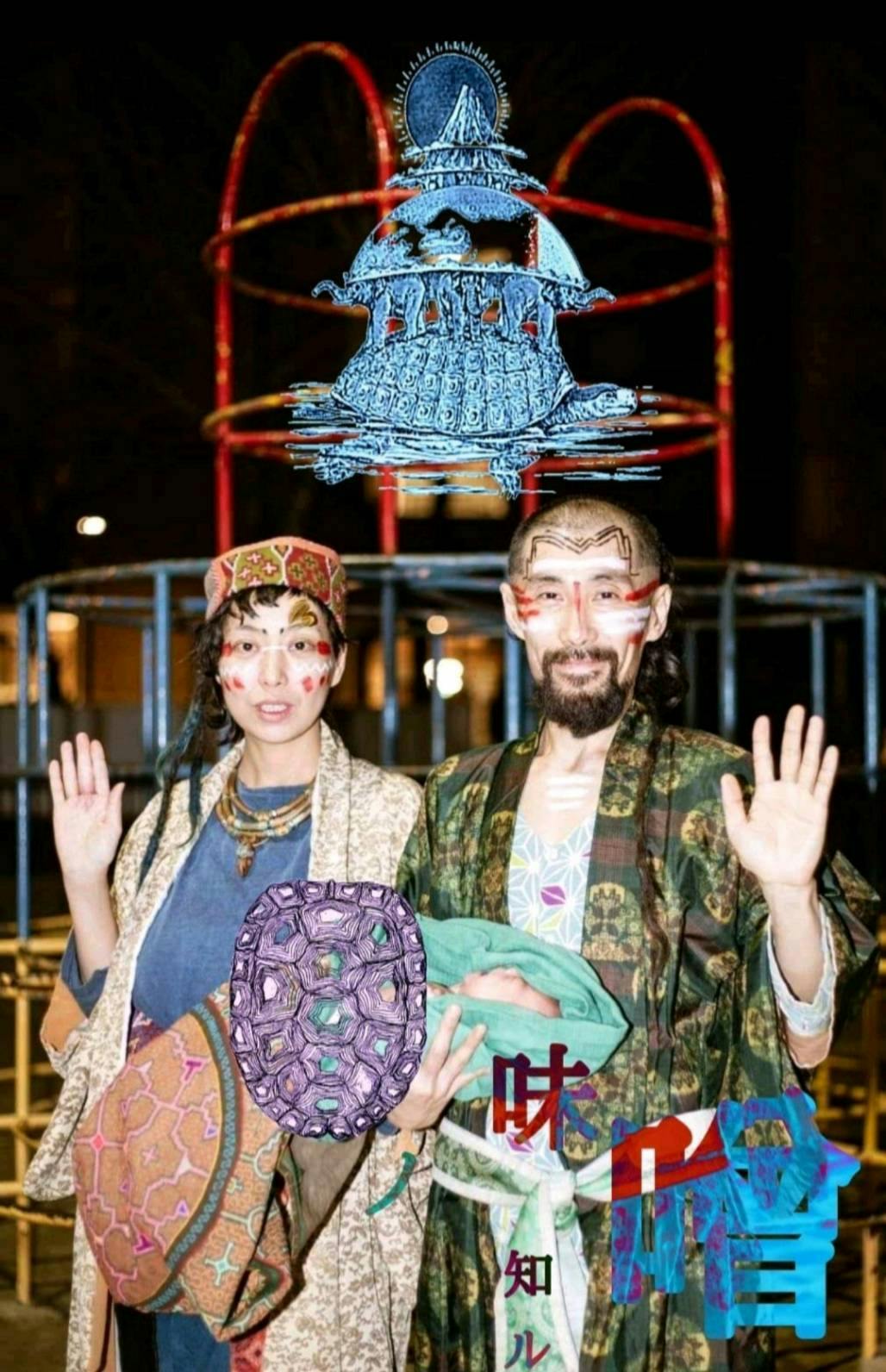 ONI率いる、Dr.虎成、Ba.龍成(たつなり)、Gt.樹、ジャンベ龍成(りゅうせい)、sax.啓太郎、Cho.あまねの7人による、ジャンルも年齢も肩書もなんもかんも超えて、踊り歌えばただの「生き物」やとゆう喜びを爆発させたいめっ茶楽しい!大阪のお祭りバンド!!
