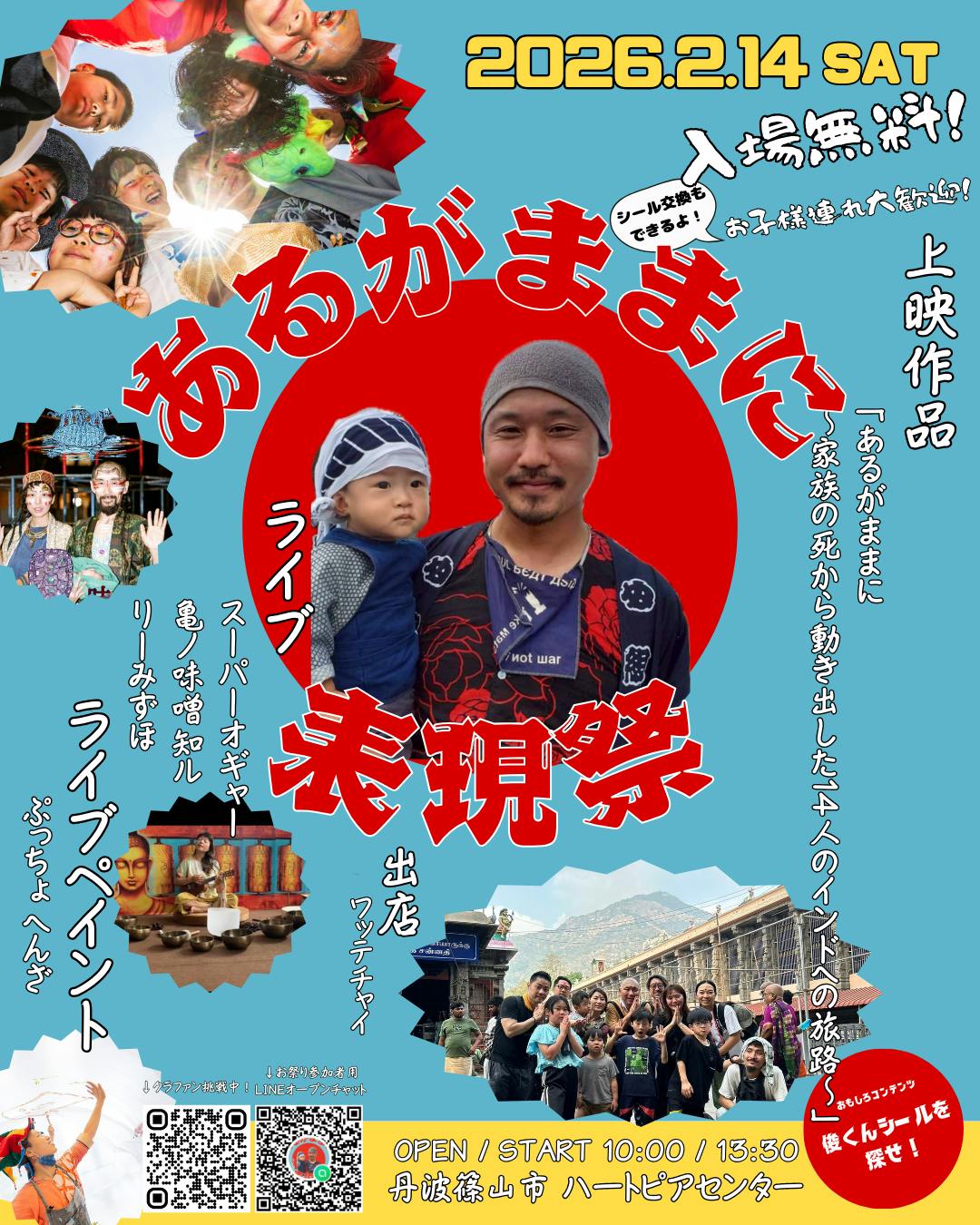 2026/02/13 21:00いよいよ明日2月14日あるがままに表現祭 当日です。企画をはじめてから会場探し、演者さんにご協力のお願いしそしてこのクラウドファンディングへの挑戦。企画をはじめた当初は、日程は決めて、演者さんに声をかけたもののなかなかうまく進まず、、、会場探しにも苦戦している中クラウドファンディングをはじめ廣川兄弟でたくさん話し合ってきました。思えば、廣川兄弟が一丸となって、何か一つのものを作り上げるのは初めての経験だったかもしれません。時には泣き、時には揉め、時には大爆笑し明日のお祭りのために、それぞれがそれぞれの形で頑張りました。いやあ。ほんとによく乗り切った。明日という1日が無事に迎えられることは、支援者さん一人一人の気持ちがあり応援のコメントや、連絡をくださったりなど本当に皆様のおかげです。本当にありがとうございます。もしかしたら、家族が亡くなって「お祭り」なんてやらなくてもいいのかもしれない。こんなにたくさんの方々にご支援していただきながら、果たしてやる意味があるのか?そんな瞬間もありました。でも、言葉にはできない、このお祭りを作り上げることによって生まれる"何か"に気持ちを駆り立たされて日に日に準備を進めていく中でこのお祭りを作り上げる過程から、全て必要な経験だったと思えています。これも全部景俊の策略な気がしてなりません。笑景俊がおもっていた、"何かを変えたい""こういう未来にしていきたい"という課題もこのお祭りを作るにあたって、なんとなく見えてきた気がしています。こんなにたくさんの方々が景俊に携わっていていくらお金を払ってもつながることのできないひとりひとりの"ご縁"があってこんなにもたくさんの方々が声をあげてくれている、ということを実感しました。死って、とても悲しくて不甲斐なくてどうしようもできないことですがこんなにパワーがあって、すごい愛に包まれることもあるんだと。大切なことをたくさん気づかせてくれて、たくさん成長することができました。ご支援いただいた皆様はじめたくさん動いてくださった皆様、応援してくださった皆様、声をあげてくれた皆様そして景俊。こんな素晴らしい経験をさせてくれてこんな気持ちにさせてくれて本当に本当にありがとう。明日2月14日(土)は入場無料で楽しんでいただけます!みんなで作るお祭り、あるがままに表現祭!場所:兵庫県丹波篠山市 ハートピアセンター10:00〜設営祭り13:30〜上映14:00〜スーパーオギャー15:30〜亀ノ味噌知ル16:30〜リーみずほ駐車場有(車乗り合いご希望の方は下記よりオープンチャットにご参加ください!)このお祭りは、単なる追悼行事ではありません。参加者全員が主役となり、それぞれの「あるがまま」を表現する場です。独自の共創システム「わらしべドネーション」 と題してお金だけでなく、スキルや資材、縁を持ち寄ることで全員が「祭りの仲間」になる仕組みを導入します。子どもの遊び場、シール交換所とかもあります!お気軽にお越しください!引き続き、クラファンのご支援もよろしくお願いいたします!廣川家兄弟一同 もっと見る