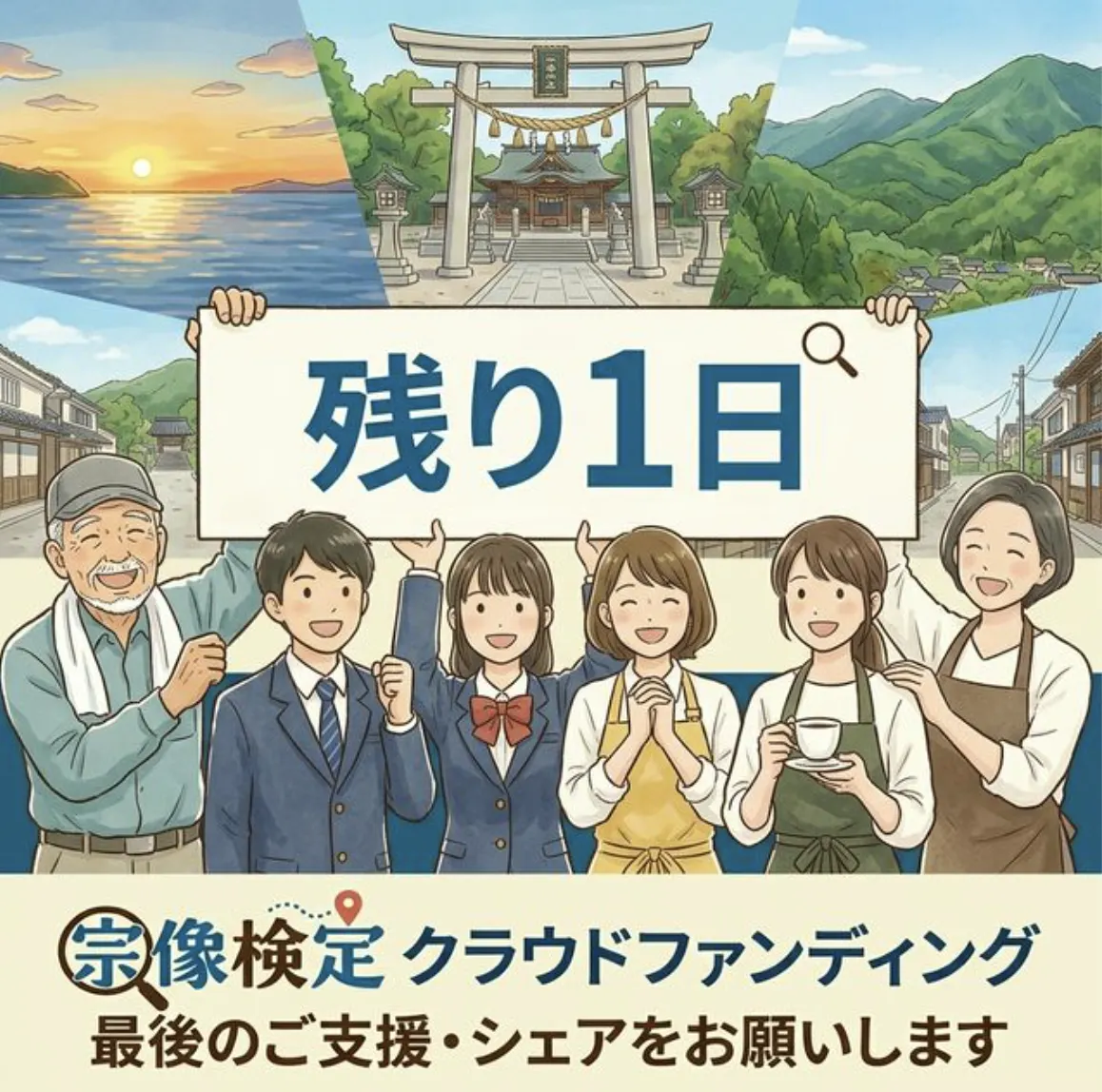 • 皆様、温かいご支援をいただき、誠にありがとうございます。宗像検定運営委員会です。おかげさまで、本日時点で262,750円・達成率87%・25名の方々にご支援をいただきました。目標の30万円まで、残り37,250円。そしてクラウドファンディング終了まで、いよいよ残り1日となりました。■ ここまで来られたのは、皆様のおかげです「宗像市民、全員出題者。」というコンセプトに共感してくださった25名の支援者の皆様、SNSでシェアしてくださった皆様、ありがとうございます。宗像経済新聞として日々地域を取材する中で、私たちが確信しているのは「市民の日常の記憶や地元愛こそが、この街の最大の財産である」ということです。この検定は、その財産を「デジタル資産」として未来へ残す取り組みです。■ 最後の24時間、お願いしたいことがありますまだ迷っている方へ「いつか支援しようと思っていた」という方、最後のタイミングです。2,000円からご支援いただけます。残り37,250円。100%達成でゴールテープを切るために、最後まで走り抜けます。どうか最後の一押しを、よろしくお願いいたします。 もっと見る