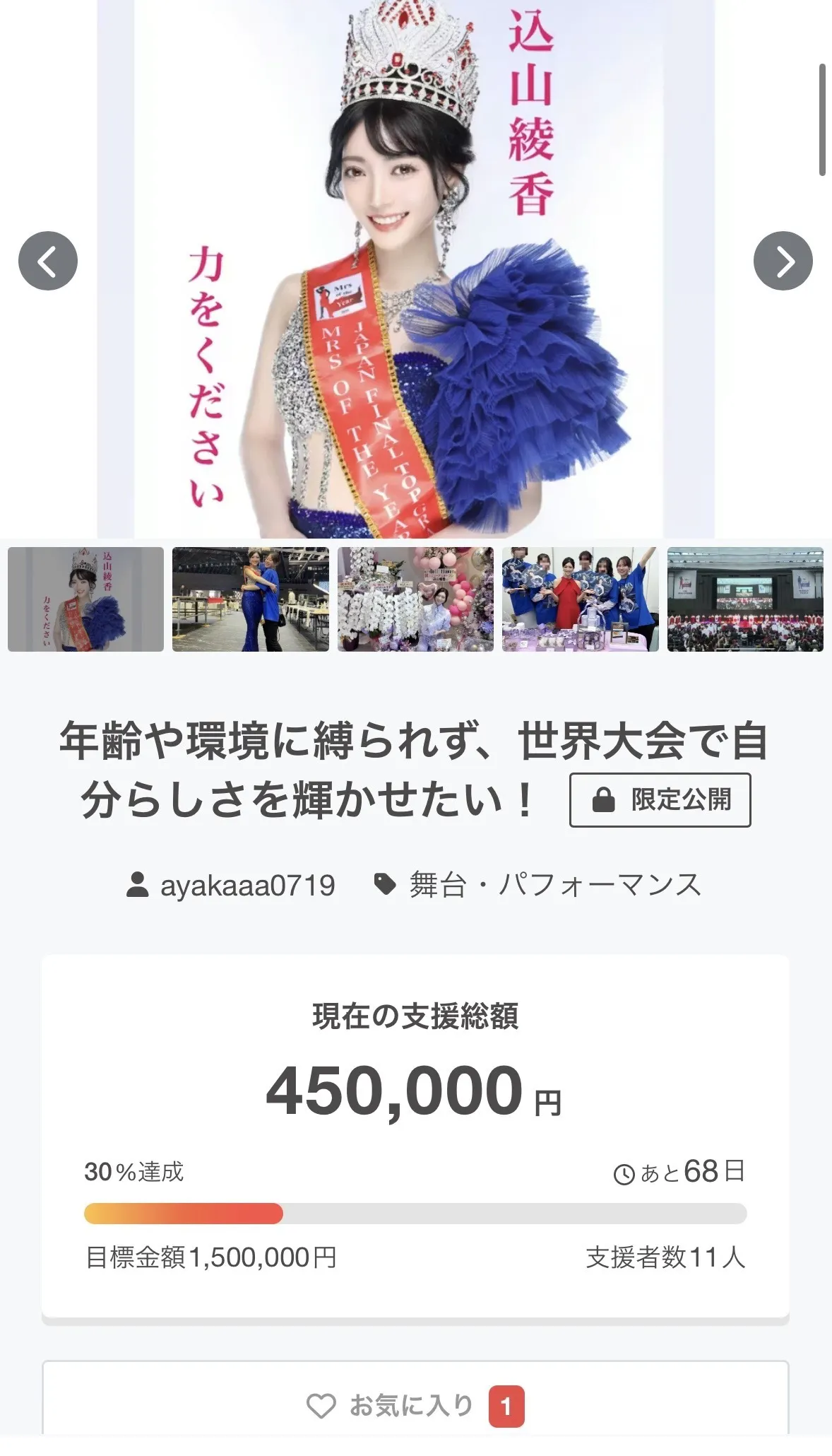 11名の方から、450,000円ものご支援をいただきました。