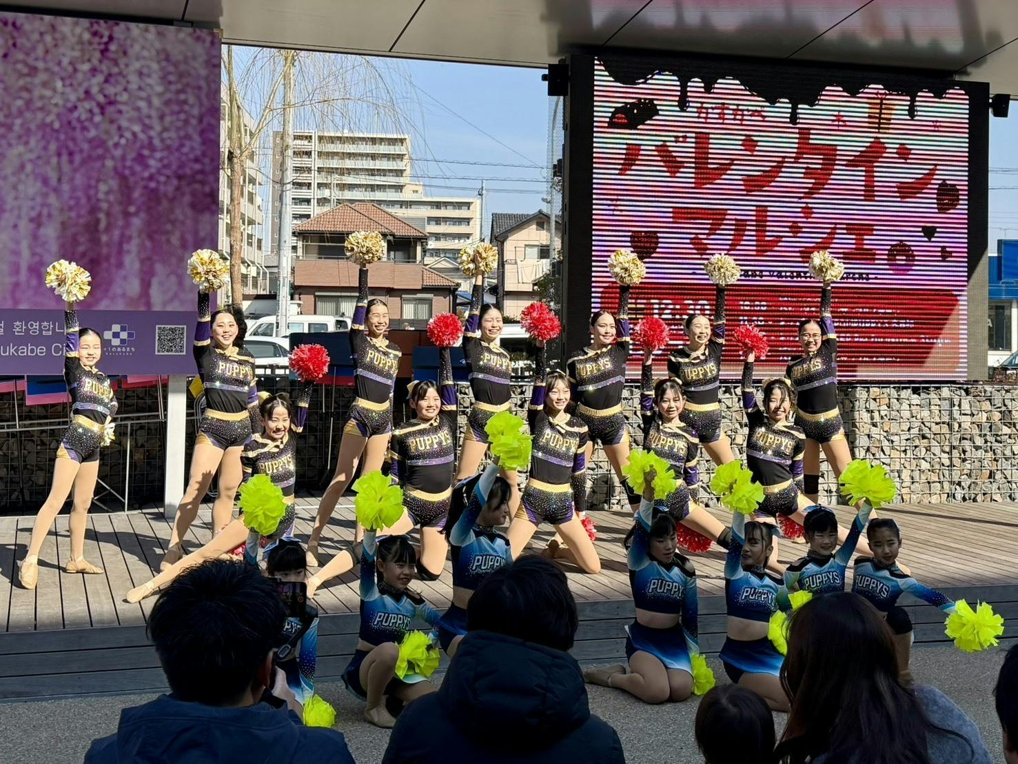 バレンタインの華やかな雰囲気の中、地域の皆様の前で演技を披露。会場からたくさんの温かい拍手をいただきました。