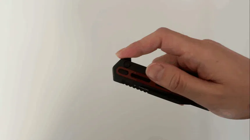 従来のライナーロック式とは異なり、F4 ECHOには「ボタンロック(Button Lock)」機構を採用しました。 ハンドルのボタンを押すだけでロックが解除され、ブレードをスムーズに収納可能。