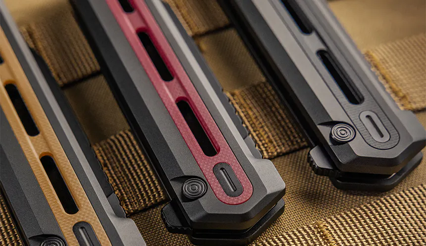 3つの個性的なG10インレイは、単なるデザインのアクセントではありません。 過酷な使用環境にも耐えうる「耐久性」と、手に吸い付くような「グリップ力」を強化するために設計されました。