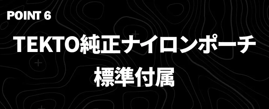 F4 ECHOには、専用設計されたTEKTO純正ナイロンポーチが標準で付属します。 大切なギアを傷や衝撃から守り、保管時や持ち運びの際もプロフェッショナルな佇まいを崩しません。
