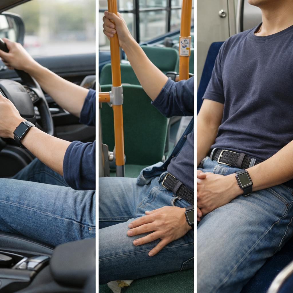長時間座り続ける移動では、ベルトが腹部を圧迫しがち。