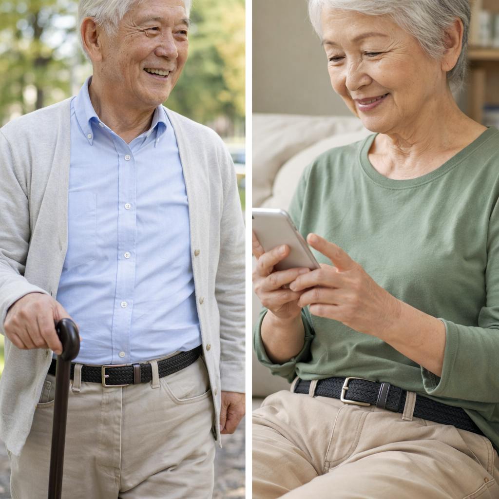 座ったり立ったりが多いご年配の方でも、無段階で簡単に調整でき、締め付けが少なく快適。
