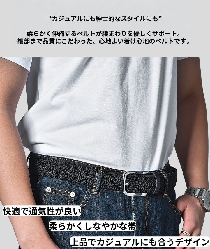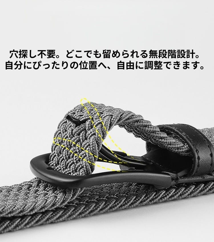残り5日となりました!!穴なし・無段階でぴったり。 痩せても太っても使える“伸縮編み込みベルト”