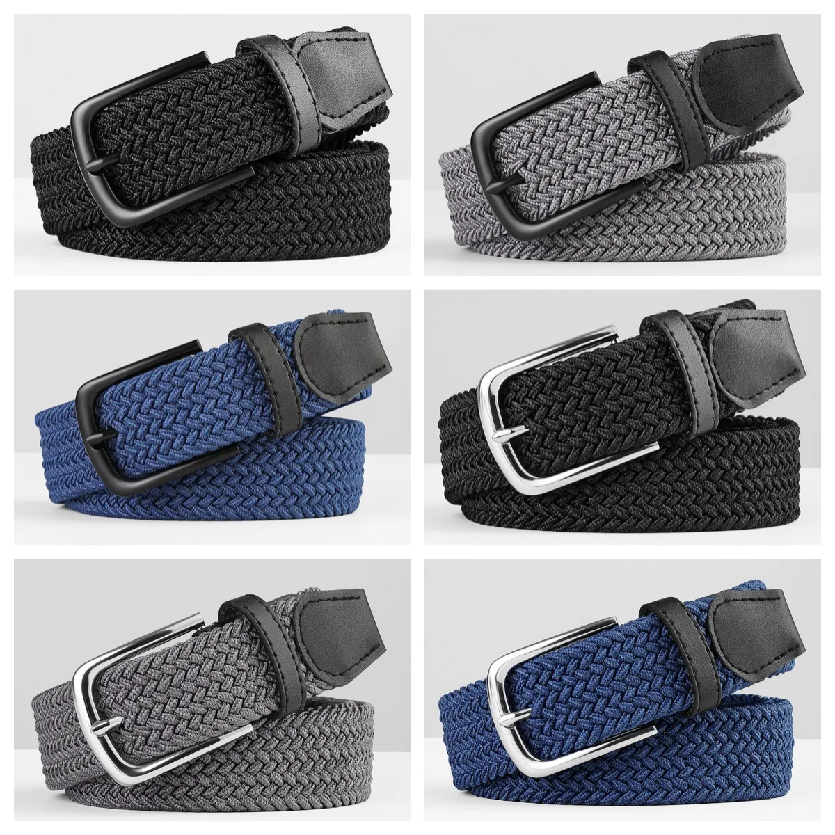 今回、ブラック・グレー・ネイビーの3色、バックルはシルバー・ブラックの2種類をご用意。
