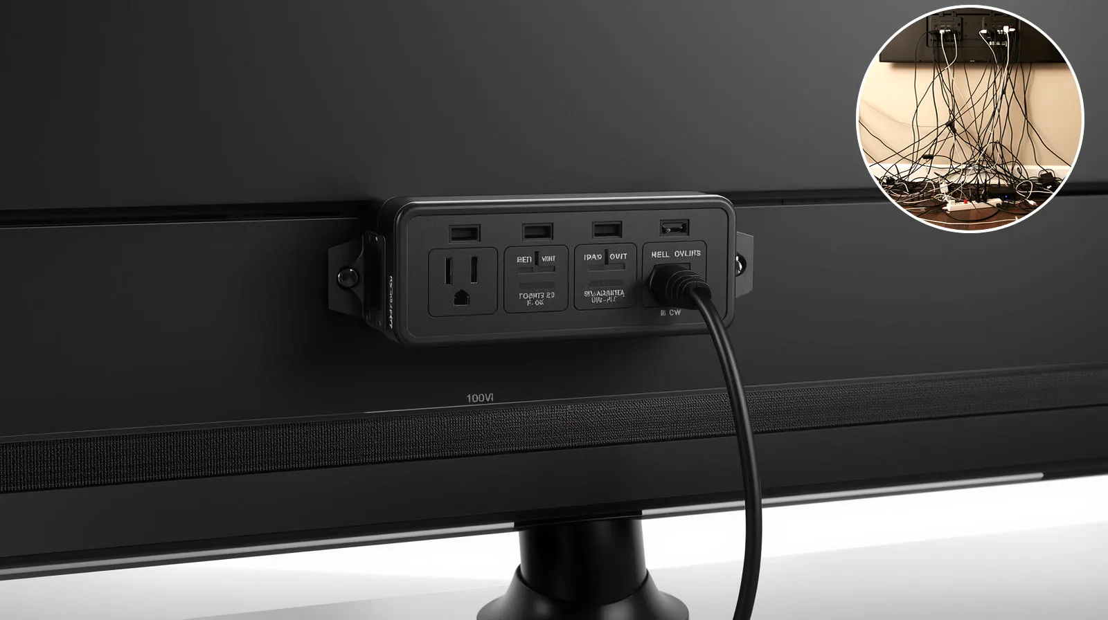 電源タップをテレビ裏にくっつけて配線周りがすっきり!