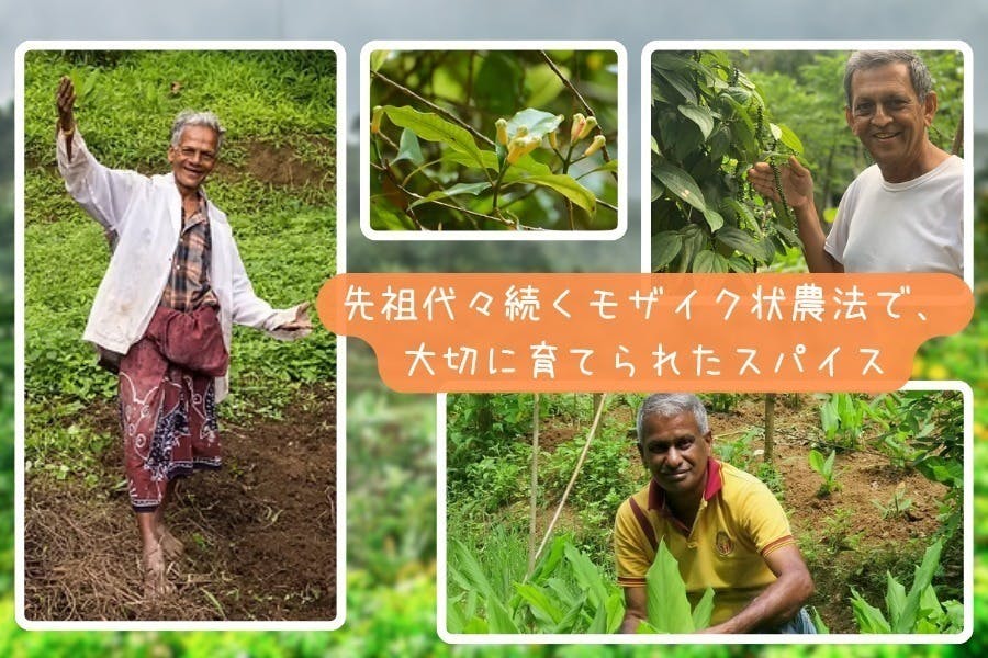 スリランカ中央部、古都キャンディ近郊にあり、多種多様な野生生物の生息地でもあるキャンディアンフォレストガーデン。そこで古代から農薬不使用で在来樹木・果樹・スパイスがモザイク状に生い茂る持続可能な森林農法で栽培を続ける複数の小規模農家の人々が、一つ一つ丁寧に全て手作業で収穫・加工・梱包したスパイス。
