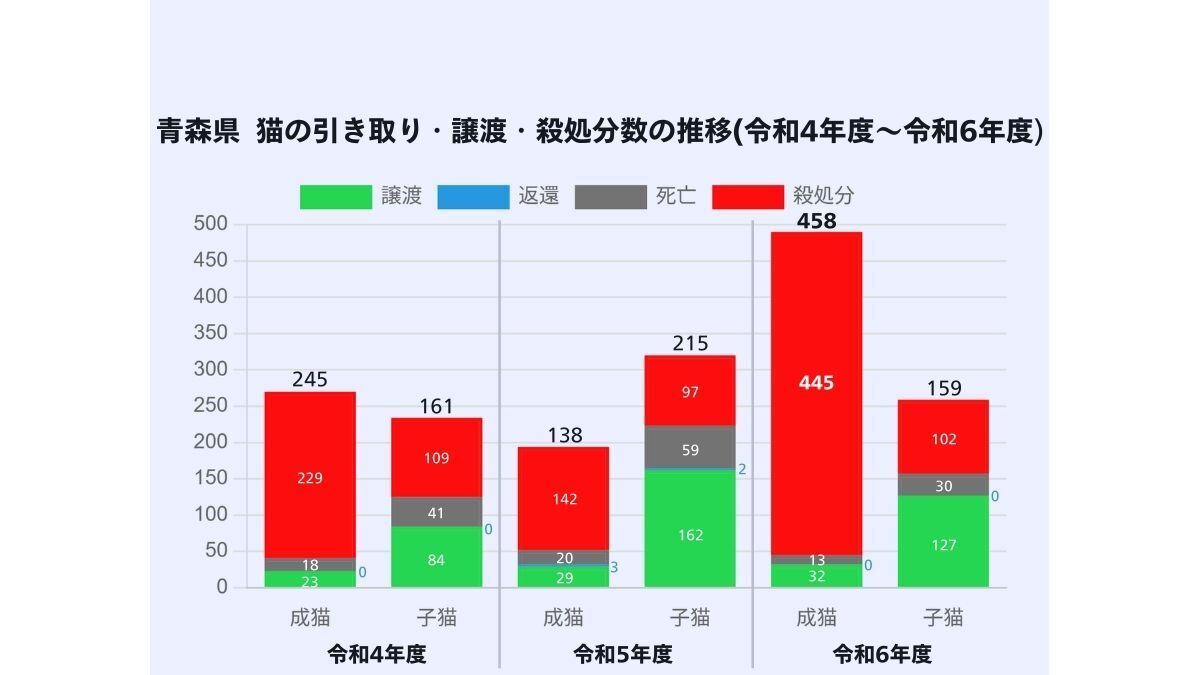 約60頭。必ずこの数字をゼロにする。また昨年度、青森県での殺処分は猫さんだけで500頭をゆうに超えています。