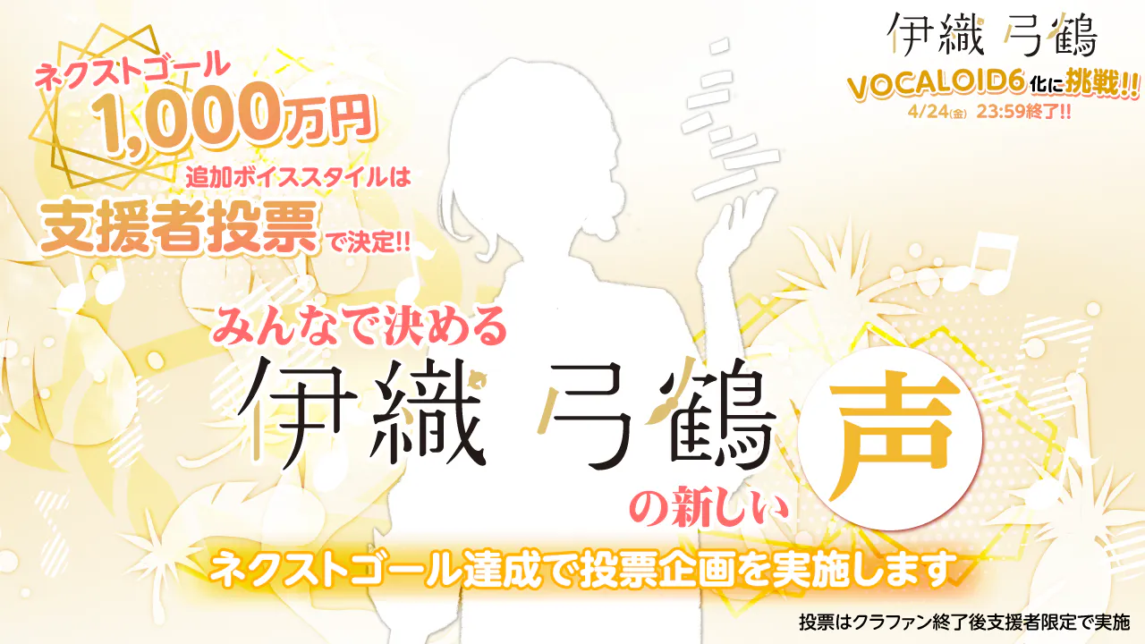 本プロジェクトは、伊織弓鶴をVOCALOID6という新たなステージへ進めるための挑戦であると同時に、これまで応援してくださった皆さまと共に、その未来を形にしていく試みでもあります。