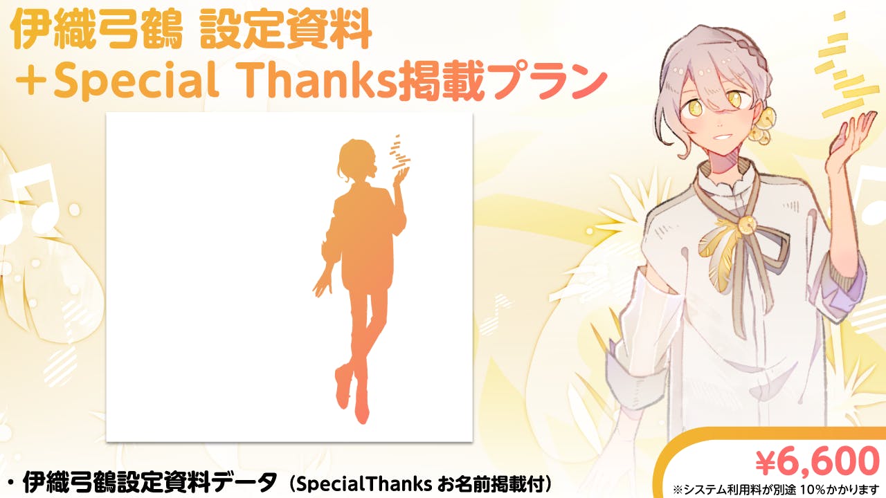 さらに、本プランをご支援いただいた皆さまのお名前をVOCALOID6 伊織弓鶴のSpecial Thanksとして掲載させていただきます。
