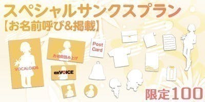 楽曲制作をすぐに始められる音声ソフトに加え、感謝の気持ちを込めたお礼メッセージ動画とクラウドファンディング限定exVOICEも付属。