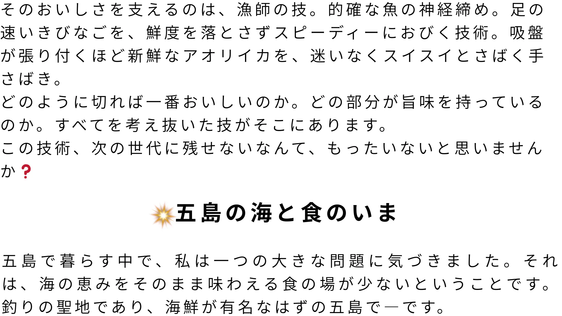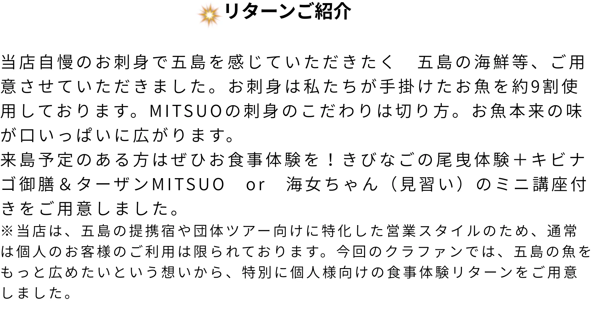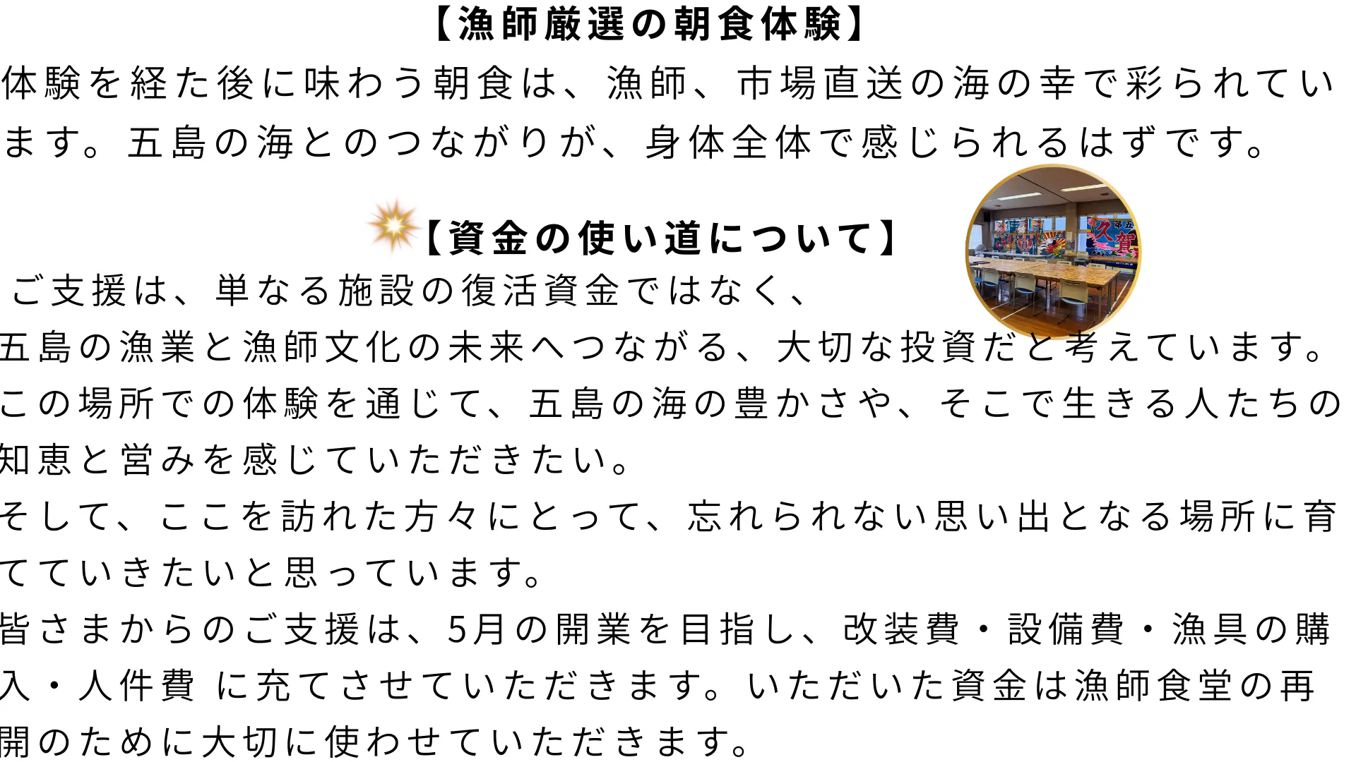 2026/02/28 09:17ご支援いただきありがとうございます。現在 漁師食堂に出すメニューを思案中です。写真は プレミアム朝食プランのお魚たちです。キビナゴ、ブリ、マグロ、ヒラマサの刺身に 天然真鯛のごはんのにかんぱちのお吸い物。海鮮漬けに、ヒラマサのカマの塩焼き キビナの塩焼き、天ぷら、ブリの煮つけ。とても食べきれない!五島の魚で満腹になってほしいです。時期によっては、ハタ、イセエビ、サザエなんかも付きます。とにかくおいしい五島の魚、ぜひ堪能してください。 もっと見る