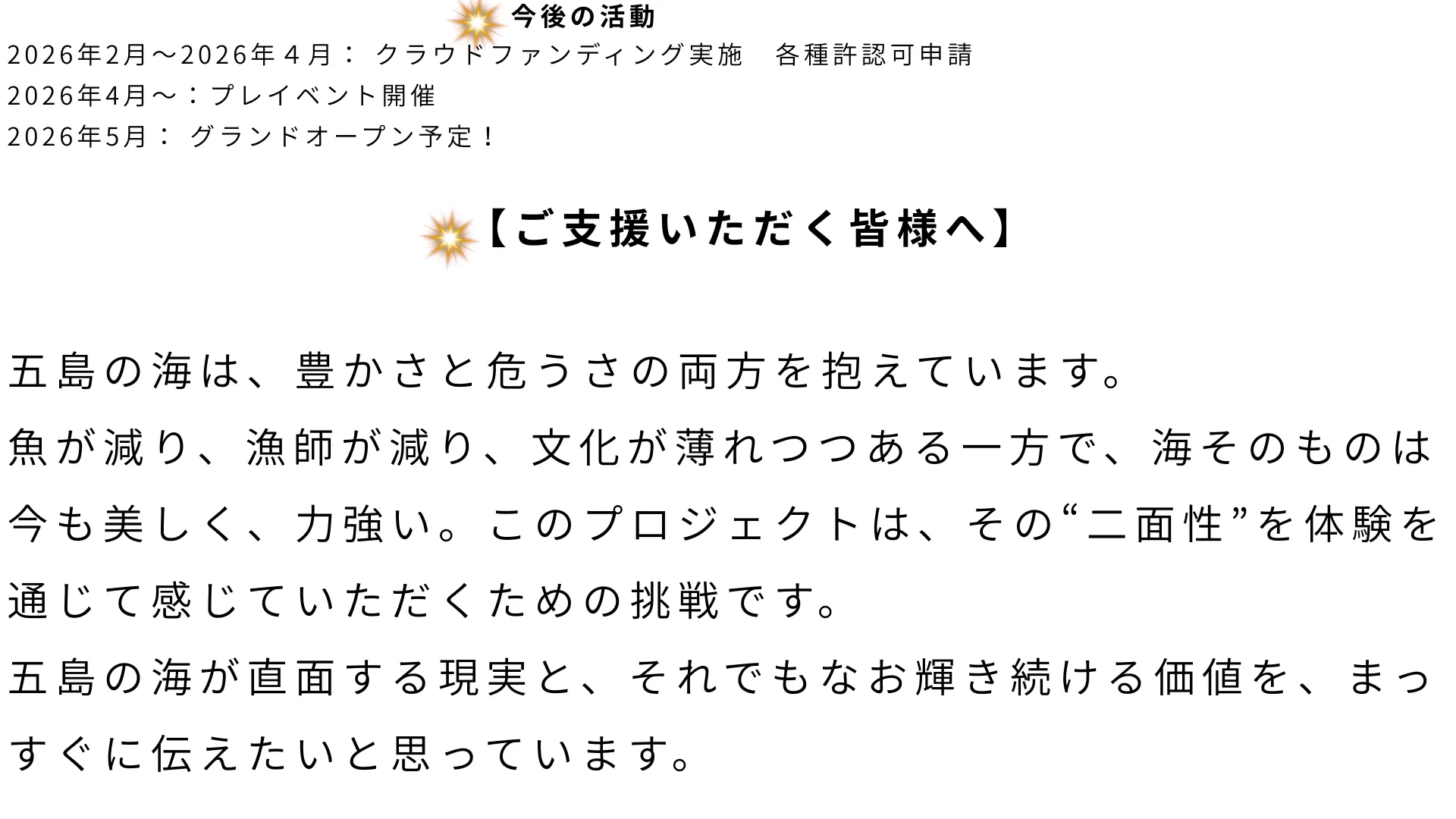 2026/02/27 21:03ご支援いただきありがとうございます。現在 漁師食堂に出すメニューを思案中です。写真は プレミアム朝食プランのお魚たちです。キビナゴ、ブリ、マグロ、ヒラマサの刺身に 天然真鯛のごはんのにかんぱちのお吸い物。海鮮漬けに、ヒラマサのカマの塩焼き キビナの塩焼き、天ぷら、ブリの煮つけ。とても食べきれない!五島の魚で満腹になってほしいです。時期によっては、ハタ、イセエビ、サザエなんかも付きます。とにかくおいしい五島の魚、ぜひ堪能してください。 もっと見る