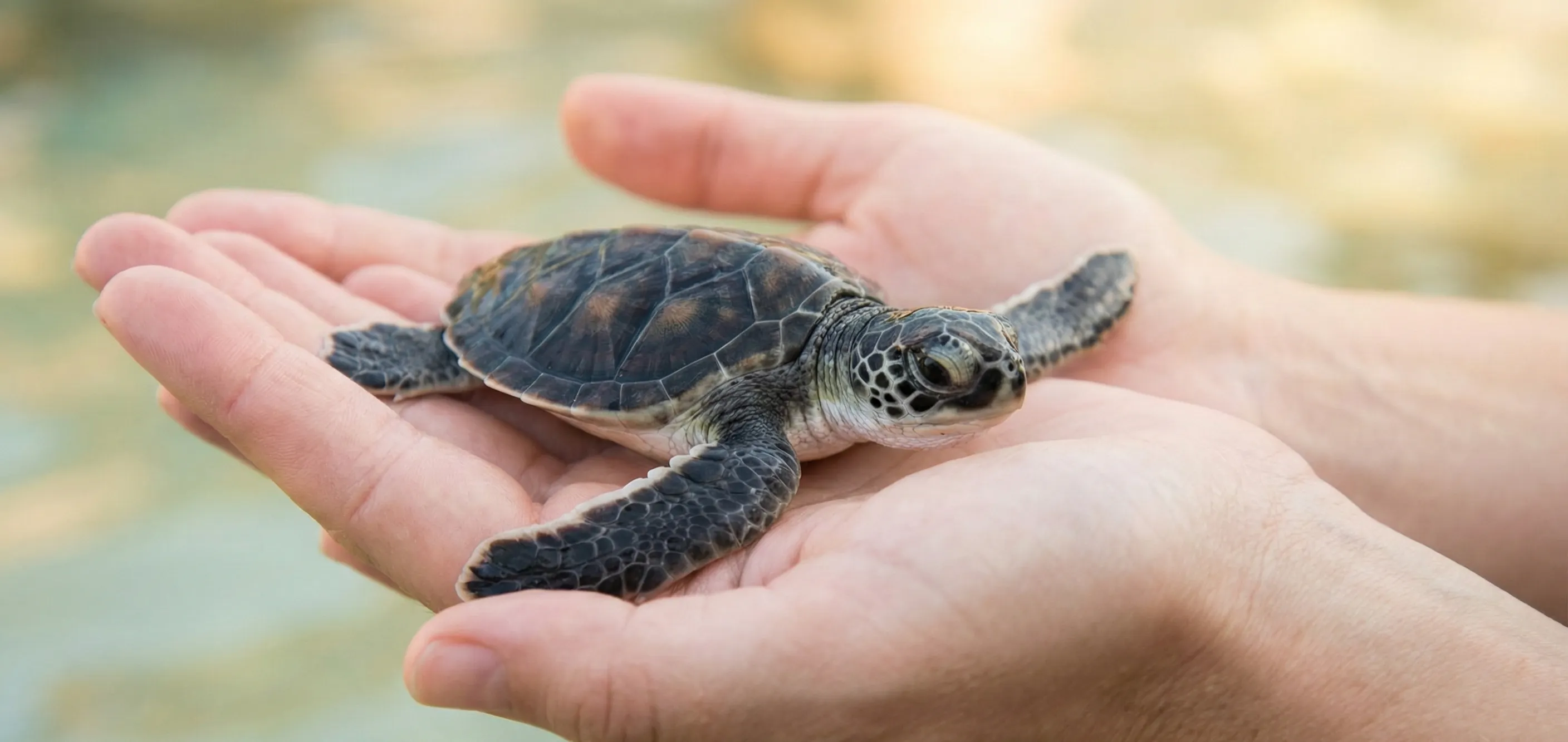 小さな子どもが初めてウミガメを間近で見て驚く瞬間。