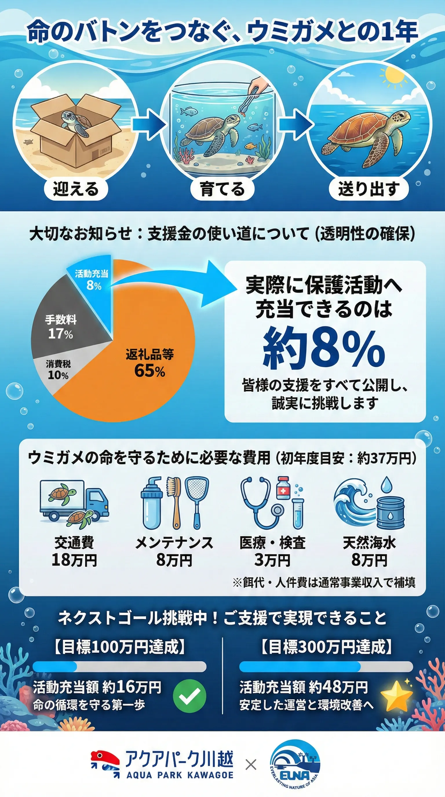 アオウミガメ受け入れ・維持にかかる費用(目安)