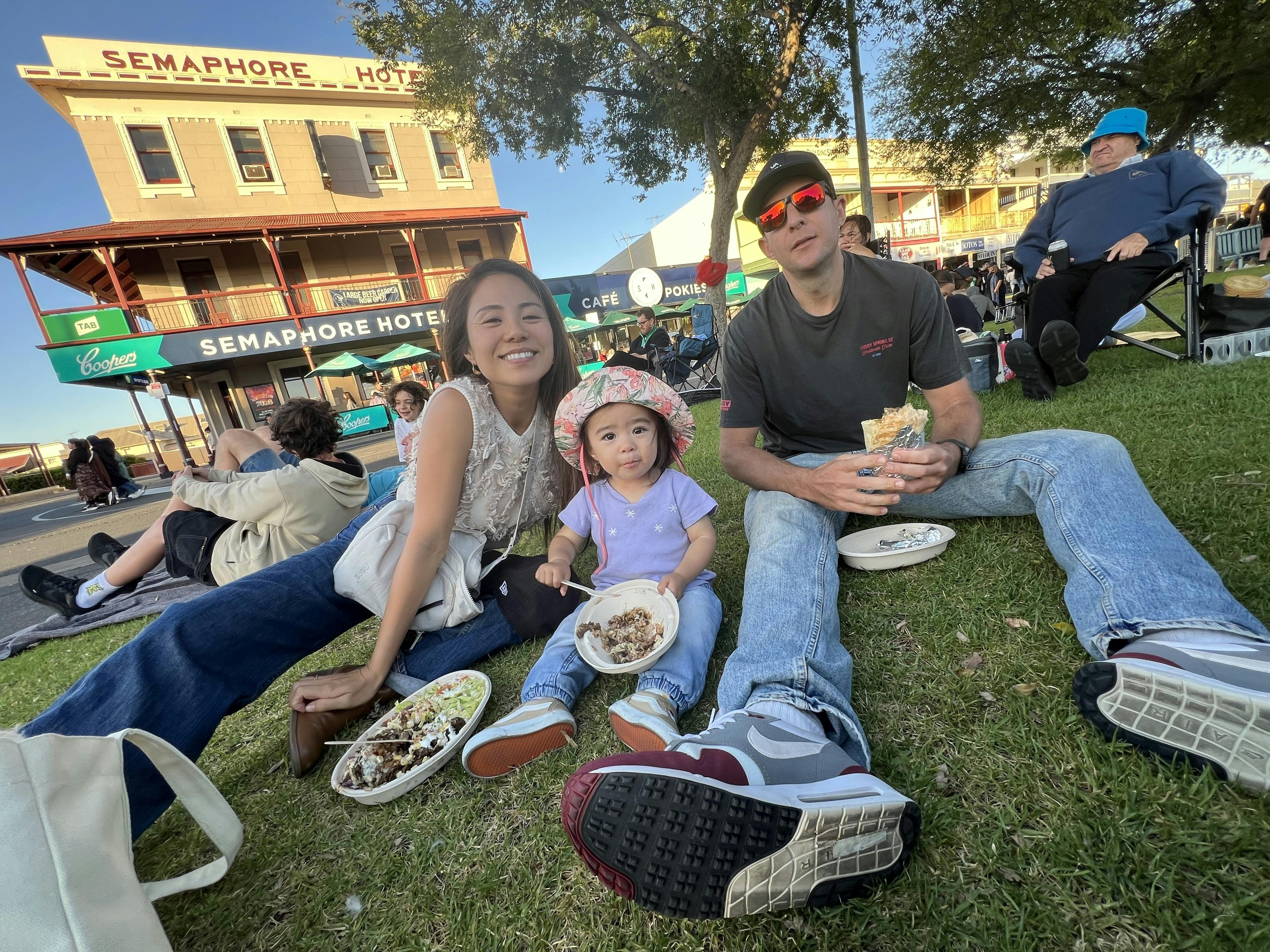 子どもたちは芝生を駆け回り、大人たちはヨガマットの上で静かに目を閉じている。