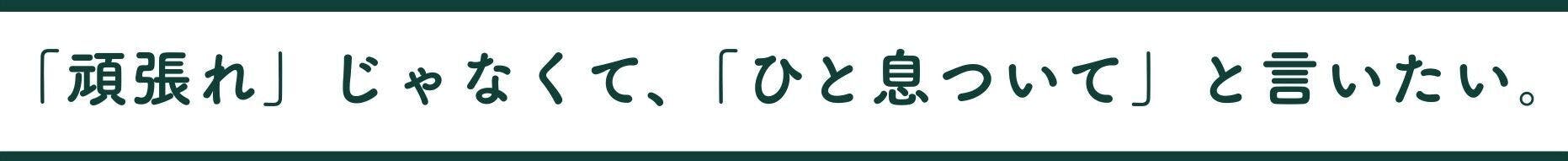 だからまず必要なのは、「頑張れ」ではなく「ひと息ついて」と言える場所。