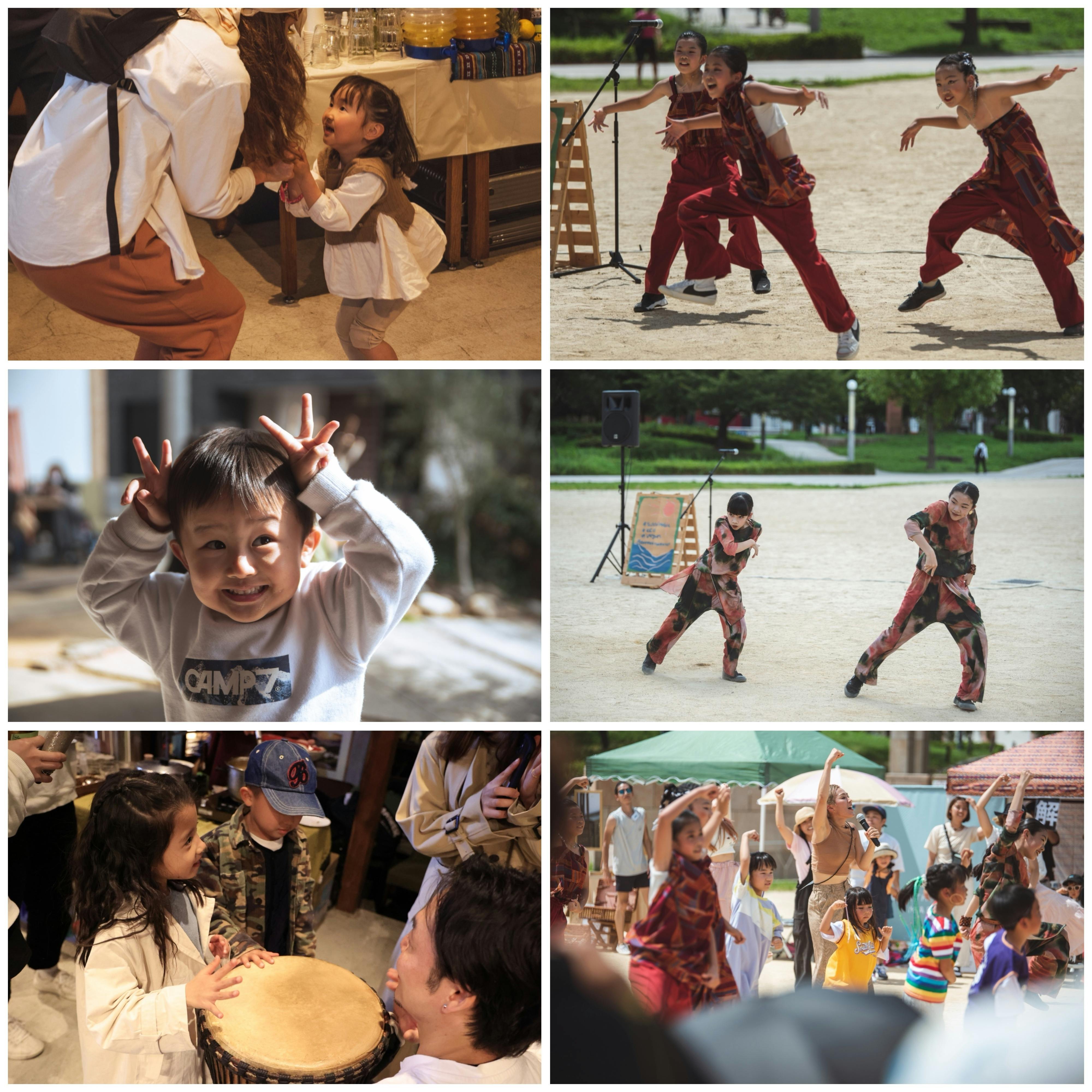 会場で、音楽に合わせて体を動かしたり、ものづくりに夢中になっている大人たちを見て、