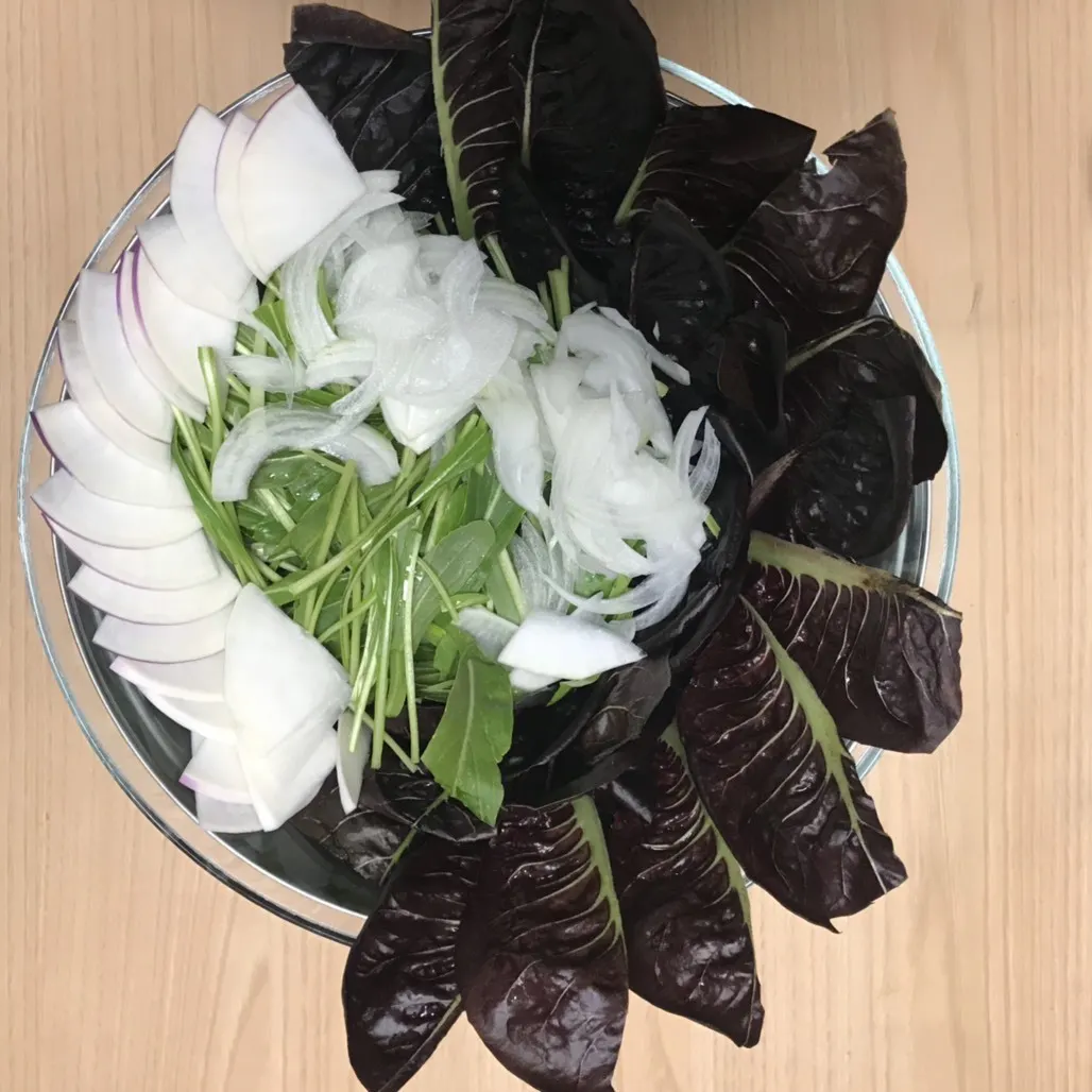 使用したお野菜は、先日農家様から頂いたチコリ、みぶ菜、カブ、玉ねぎです!