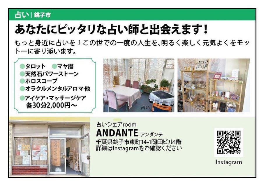 前回のクラウドファンディングで作られた、ANDANTEでの占い体験もご用意しております。