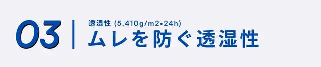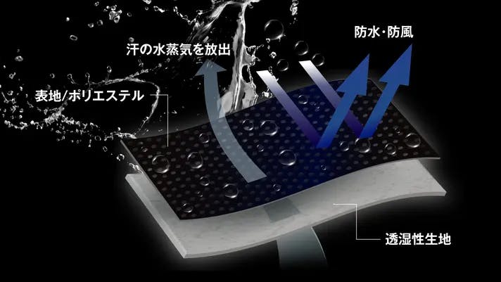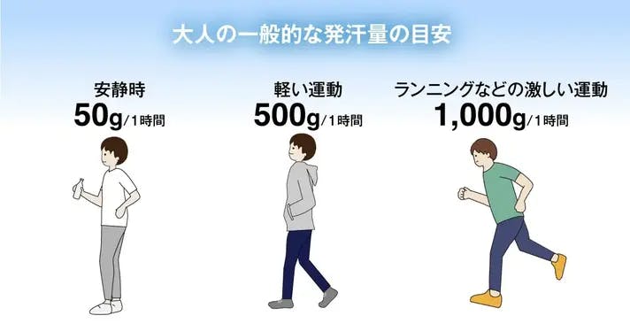 大人の安静時で1時間あたり約50g、軽い運動で1時間あたり約500g、ランニングなどの激しい運動で1時間あたり約1,000gと、安静時であっても発汗しています。快適な着心地のためには、撥水性だけでなく、透湿性の高さも重要です。