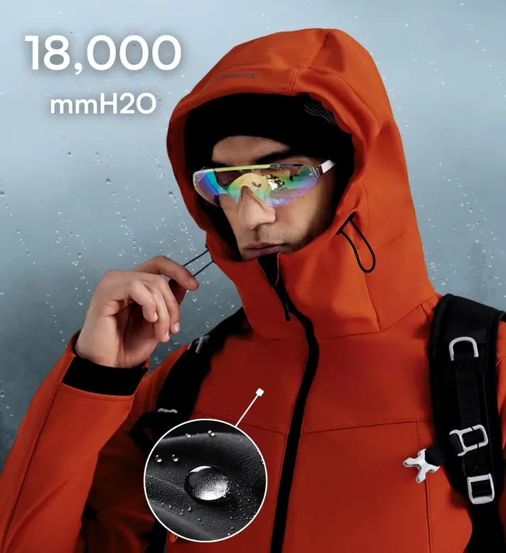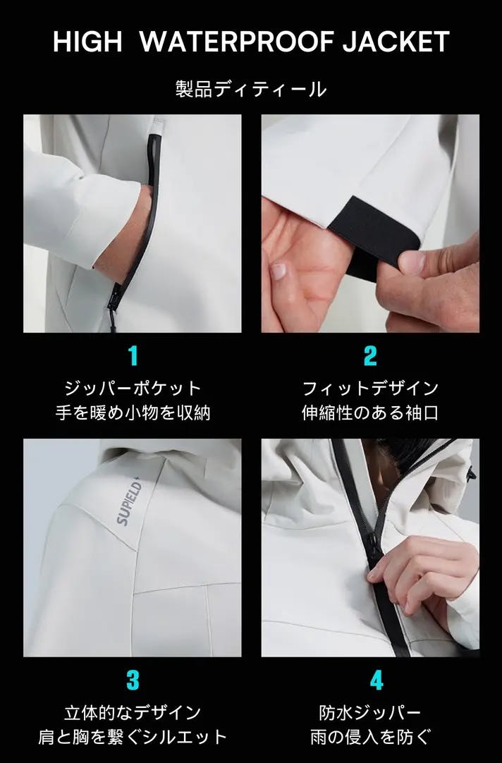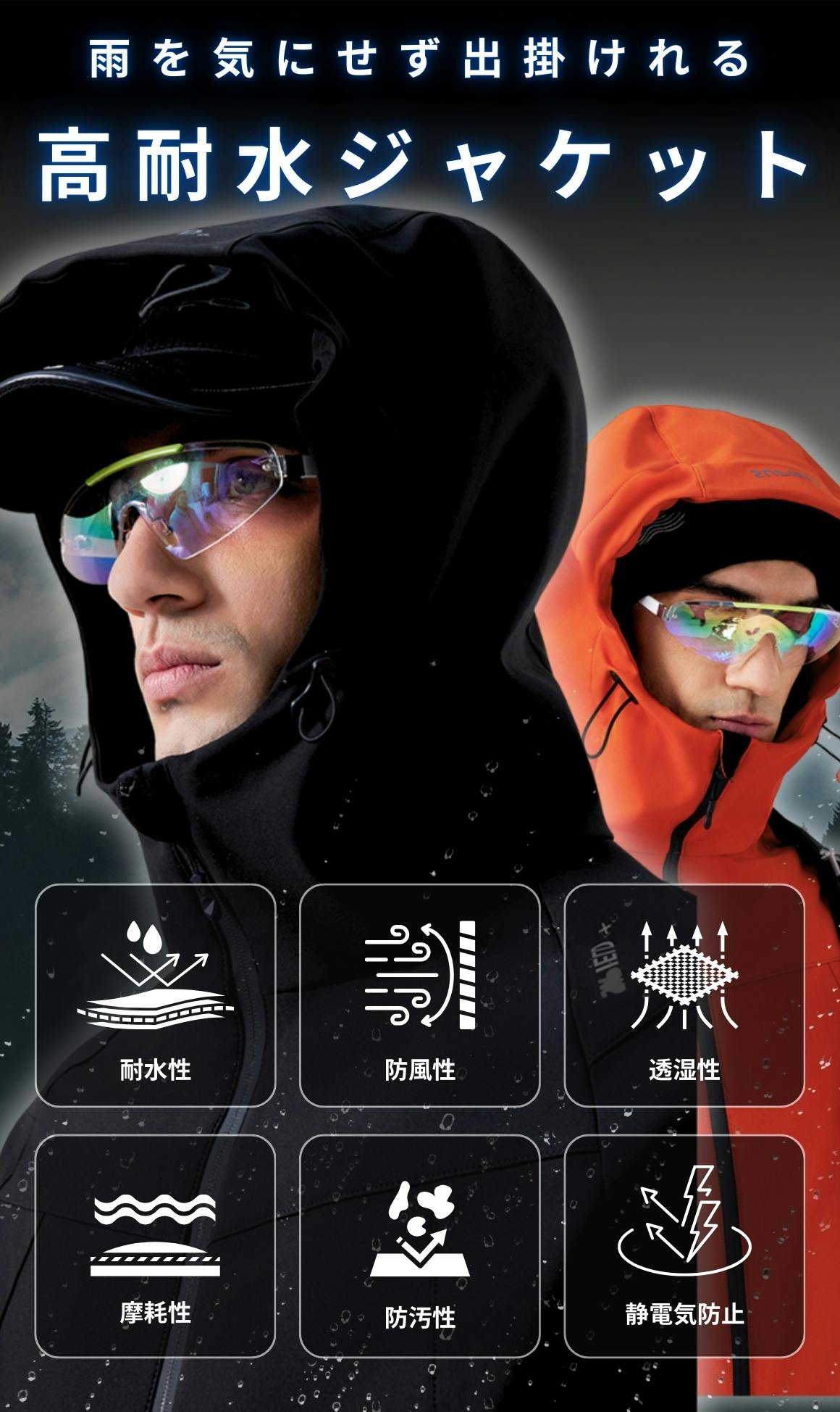 大雨でもしっかり防ぐハイレベルな耐水仕様。レインウェア並みの耐水力で、天候を気にせず行動できます。