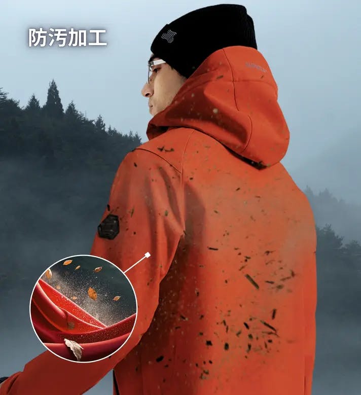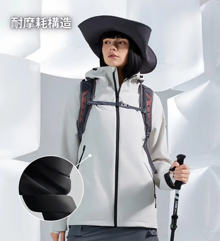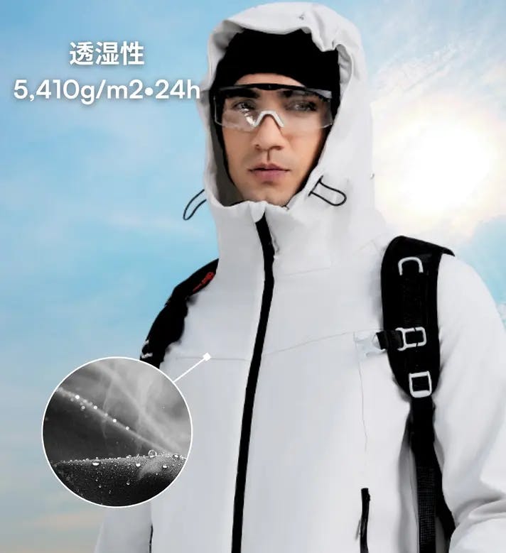 性能がアップグレードされた防風生地と防風ディテールが強力な防風システムを構成しています。