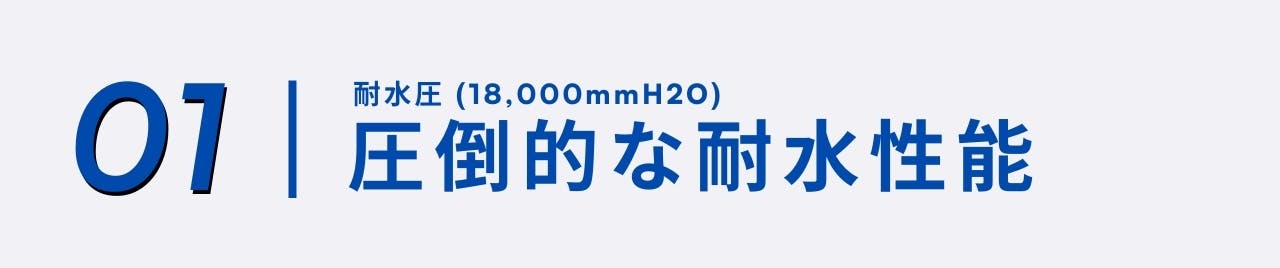 ※「高耐水」・・本製品は耐水圧18,000mmH2Oを備えており高い耐水性能を有することが確認済み