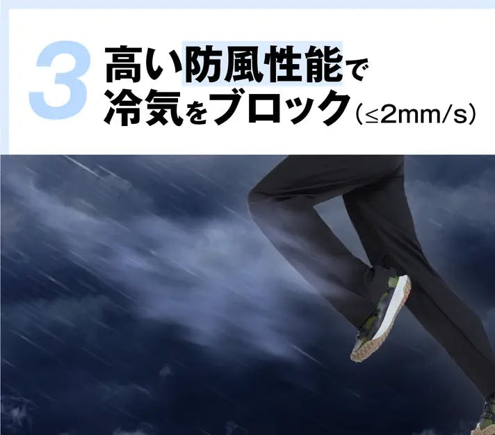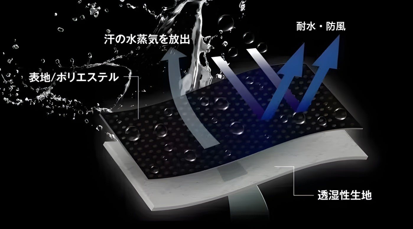 特殊な透湿防風膜が風を遮り、体温をキープ寒い季節でも快適な着心です。