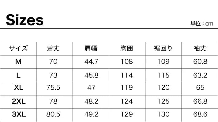 サイズ:M/L/XL/2XL/3XL