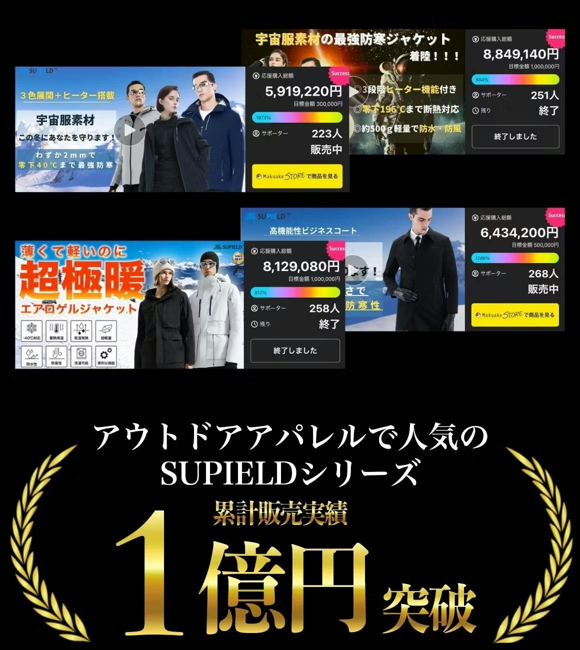 アウトドアアパレルで人気のSUPIELDシリーズは累計販売実績1億円を突破いたしました!沢山のご支援、誠にありがとうございます。