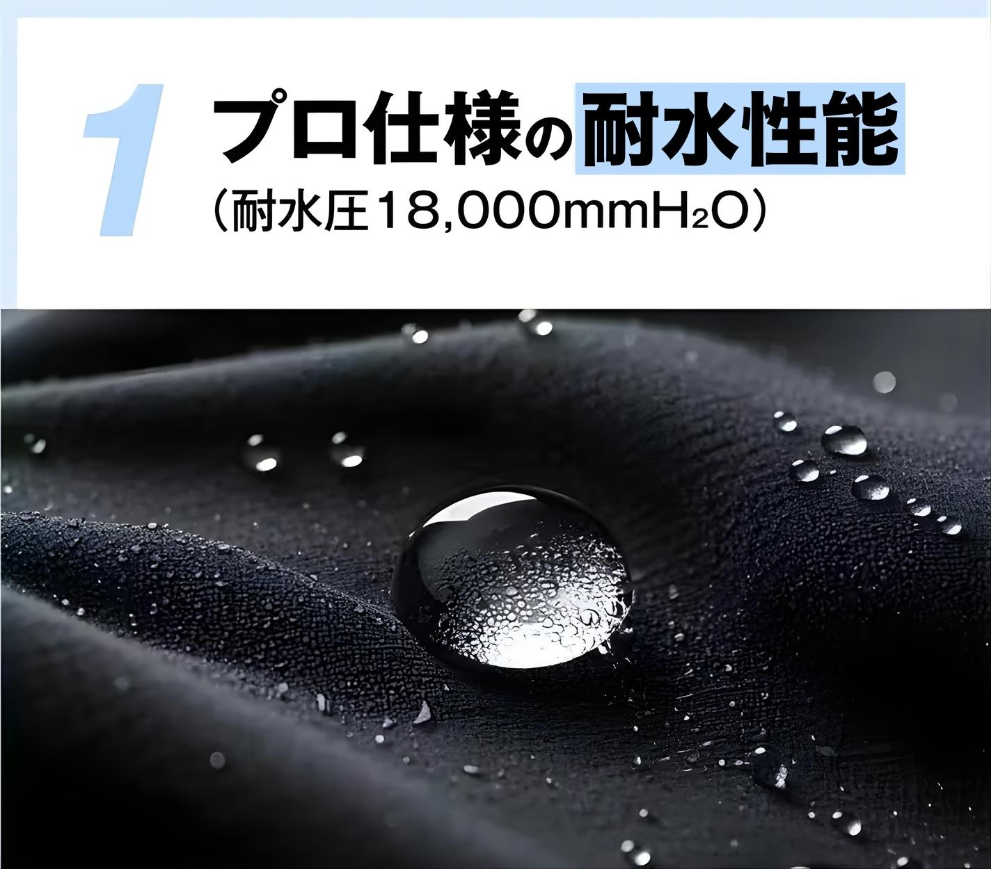 ※「高耐水」・・本製品は耐水圧18,000mmH2Oを備えており高い耐水性能を有することが確認済み