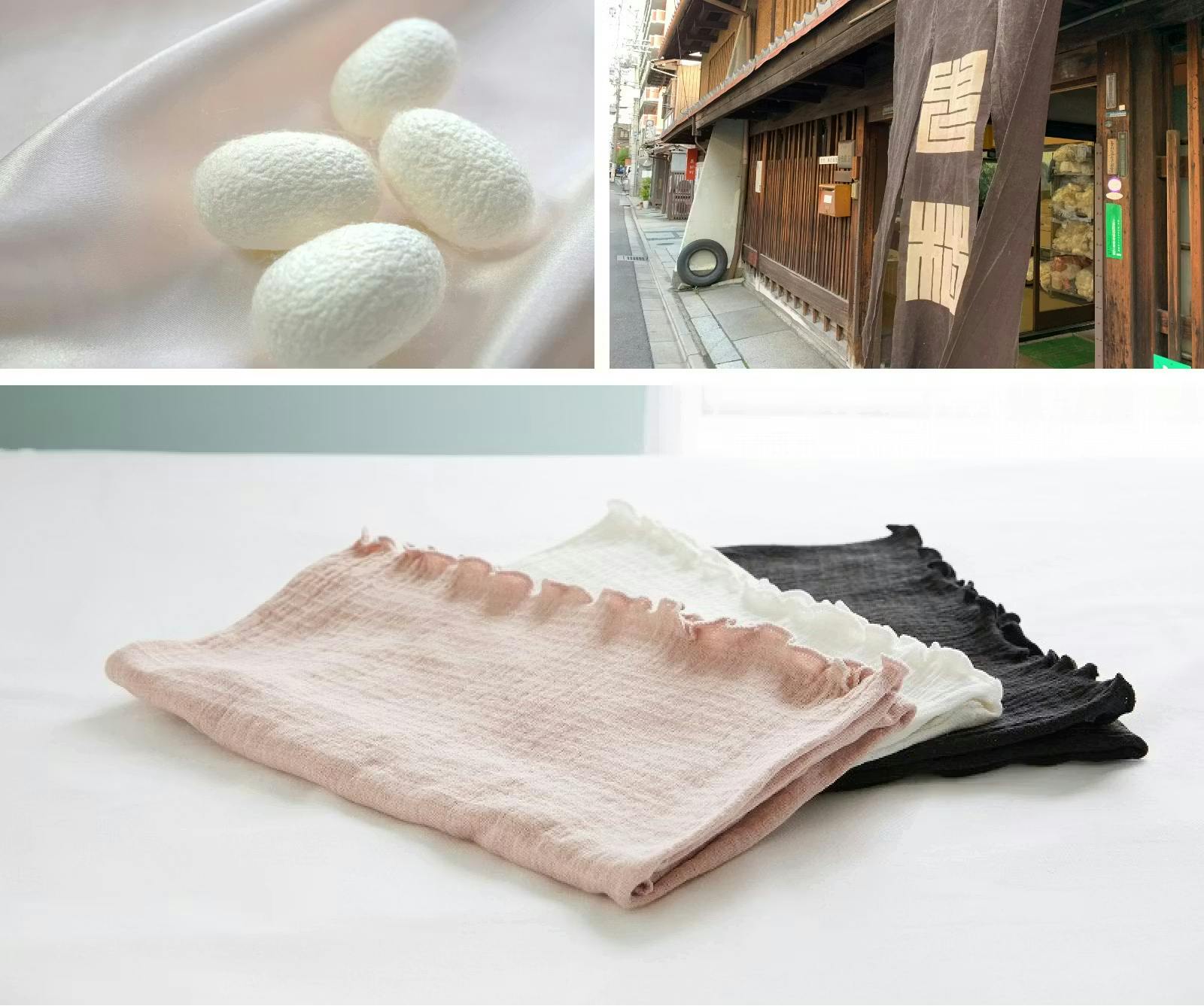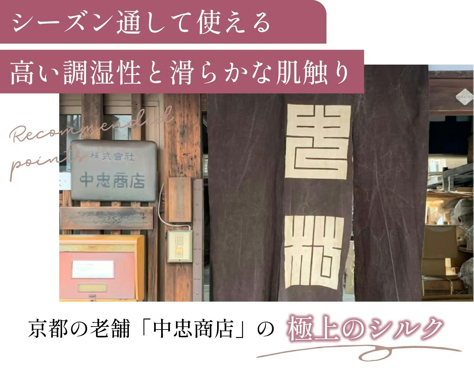 京都西陣の老舗「中忠商店」の全面協力をいただき、腹巻き部分には厳選した極上シルクを採用。