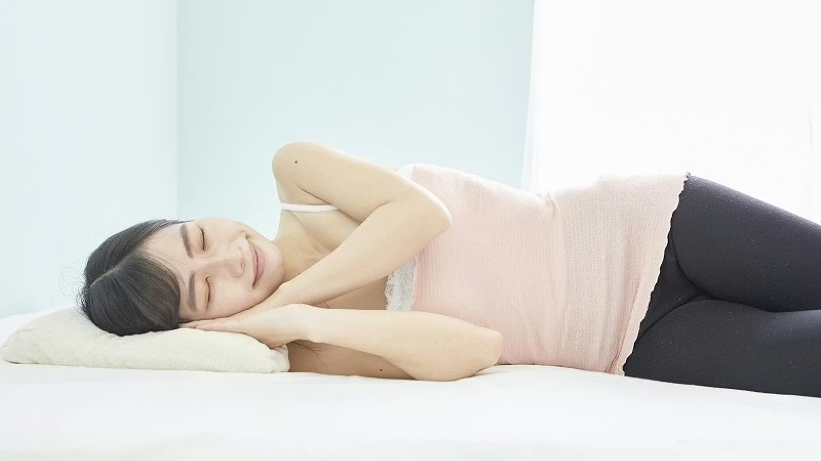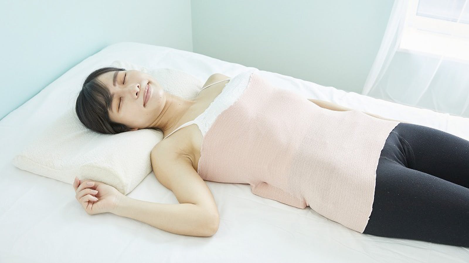 着るタイプの「腹巻き腰まくら」なら、腹巻きのような優しいフィット感を保ちつつ、寝返りを打ってもズレにくい。