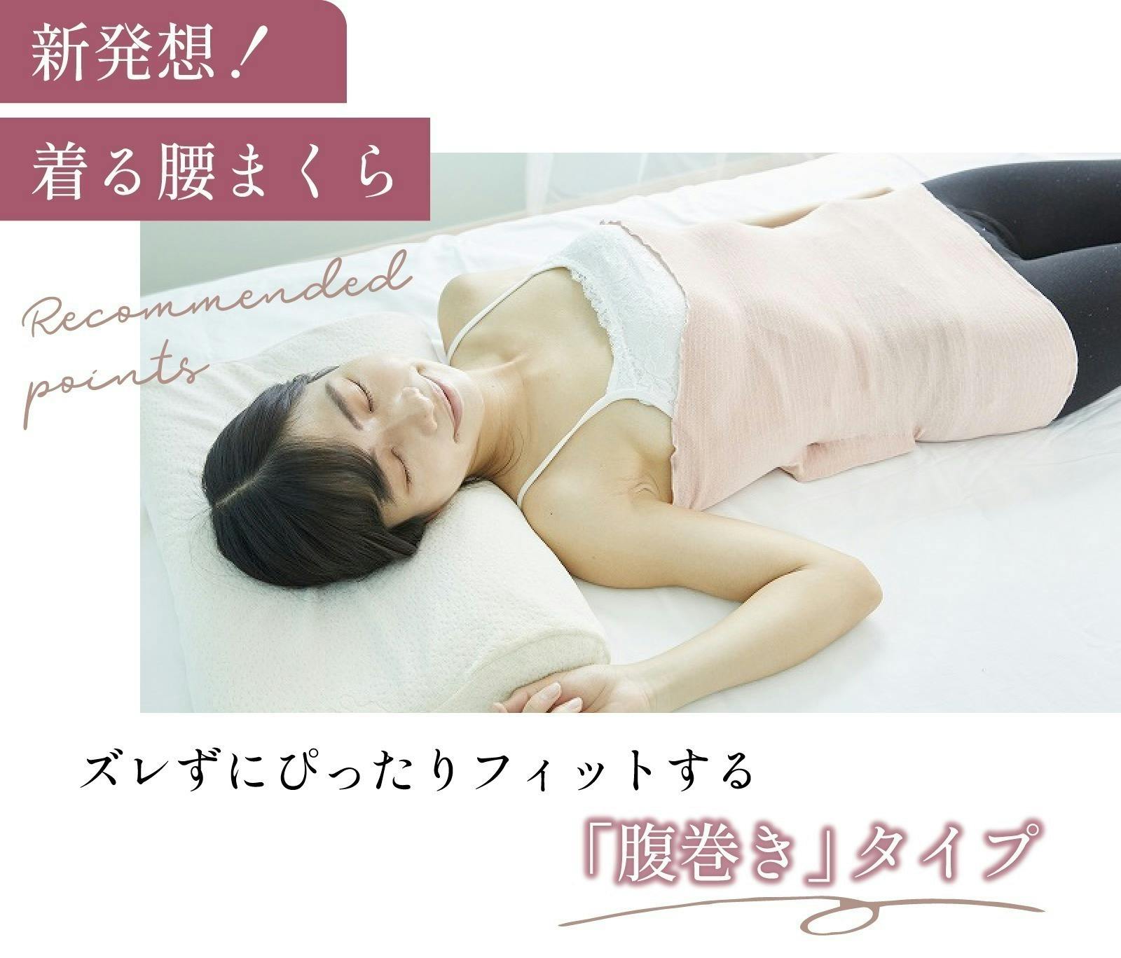 着るタイプの「腹巻き腰まくら」なら、腹巻きのような優しいフィット感を保ちつつ、寝返りを打ってもズレにくい。