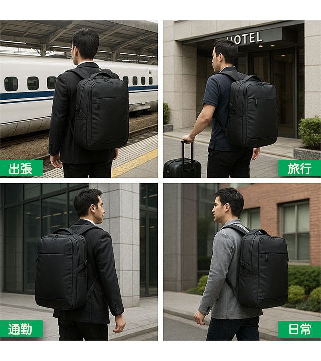 ジャケット着用時でもズレにくく、夏の薄着でも肩への食い込みを軽減。通勤・出張・移動すべてで快適に使えます。