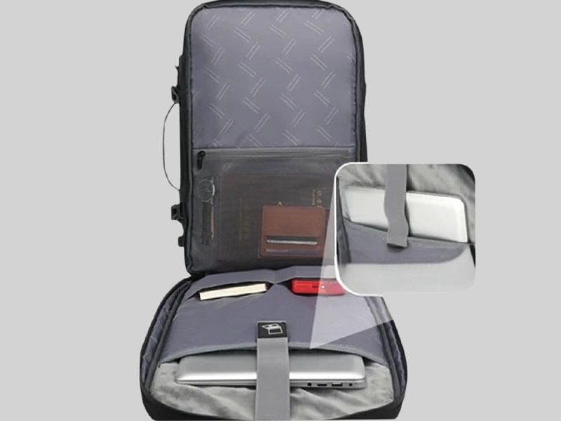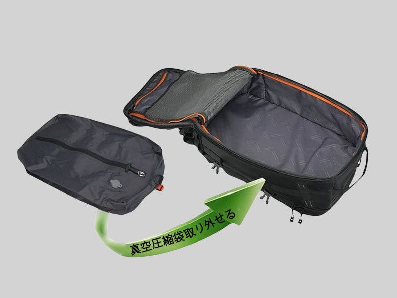 圧縮袋はバッグから取り外し可能。ホテルでは圧縮袋だけを取り出して、そのまま収納できます。