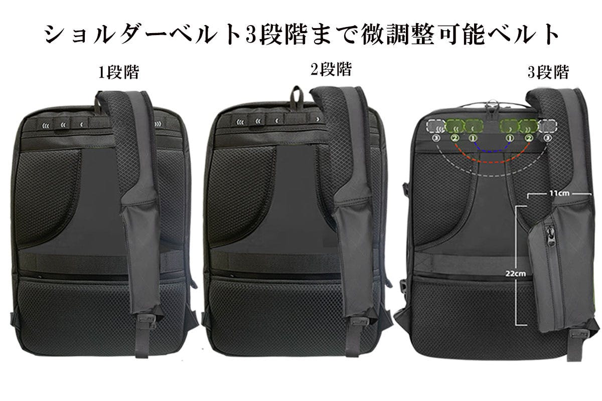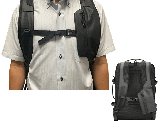 肩幅に合わせるだけで、出張は驚くほどラクになる。出張中でも「肩が疲れる」を根本から改善ショルダーベルトの取り付け位置(肩幅)を調整できる構造を採用。