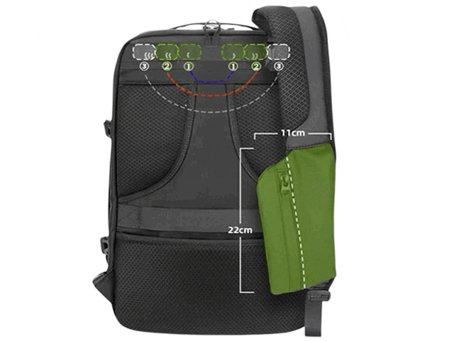 手持ち・肩掛け・背負いの3WAY対応。体格や移動シーンに合わせてショルダー幅を調節できます。