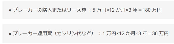 プレーカーでの活動費の内訳は下記の通りです。単純に割り算をすると6万円で1カ月稼働できる計算です。現時点で4ヵ月稼働できます。