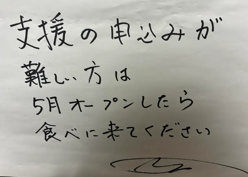 無理に頑張らないでいいので、5月にオープンしたら食べに来てください!